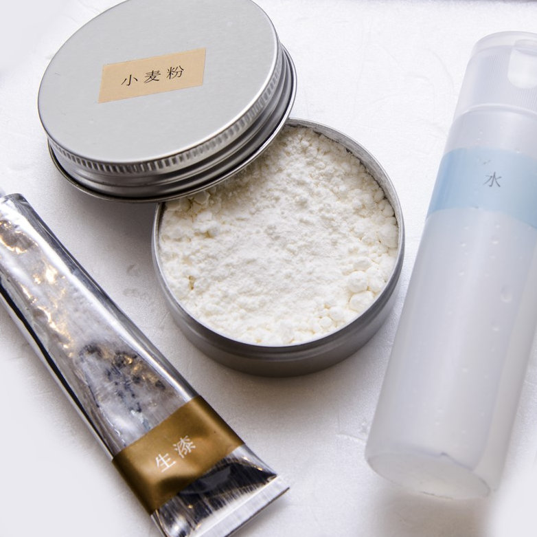 小麦粉と水、漆で作った接着剤を「麦漆」という。