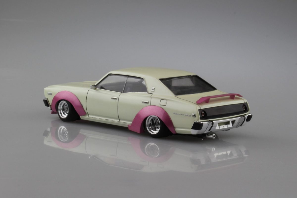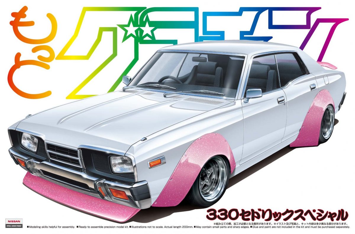 懐かしのプラモデルの代表格のひとつである街道レーサー系。今見ると「懐かしい」だけでなく、ある意味「新鮮」に見える人もいるのではないか。こちらは330セドリックをベースにした先輩仕様。シャコンタン、激しいオーバーフェンダーに吊り目カスタムなど、リアルタイムだった世代は感涙のモデル。3300円
