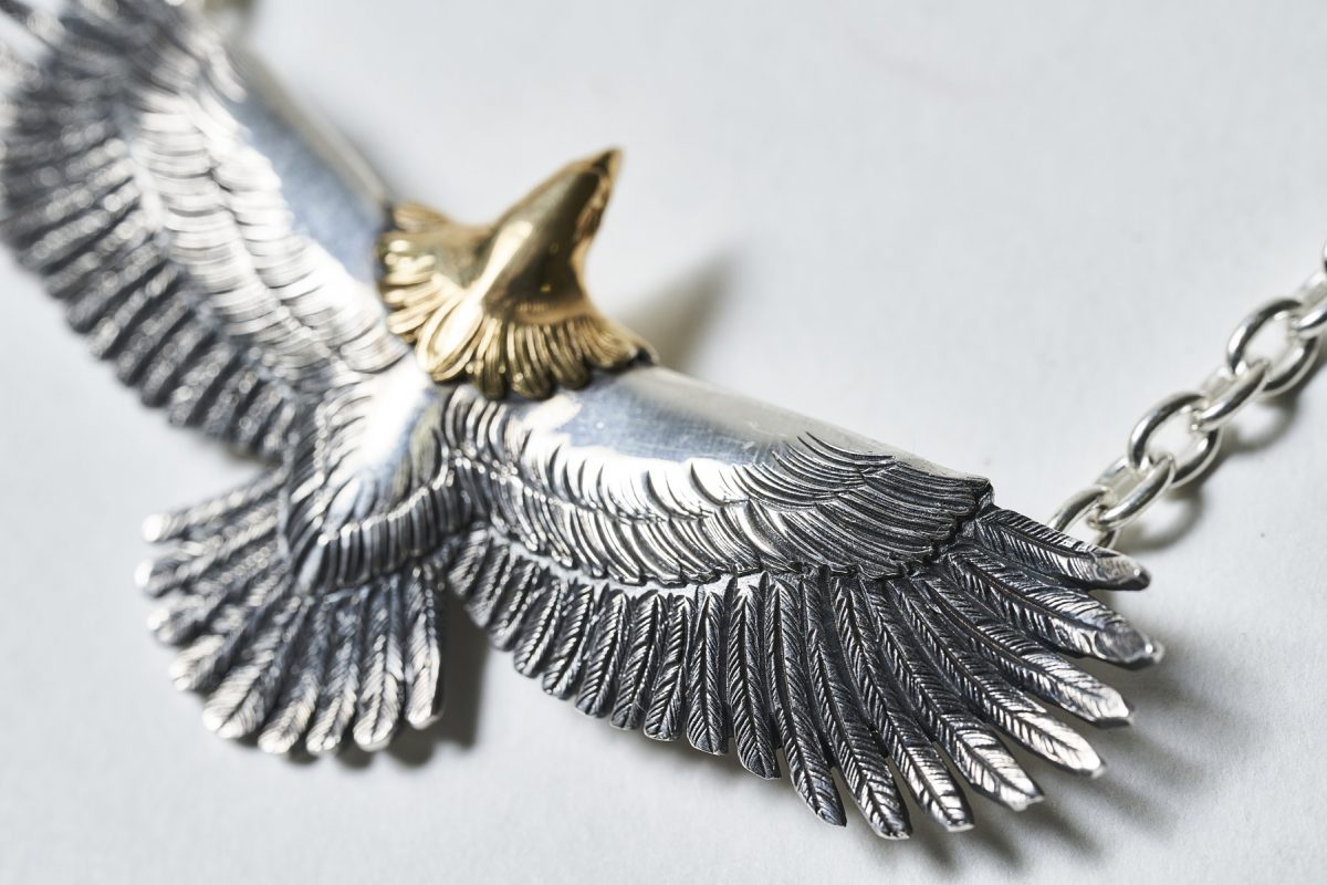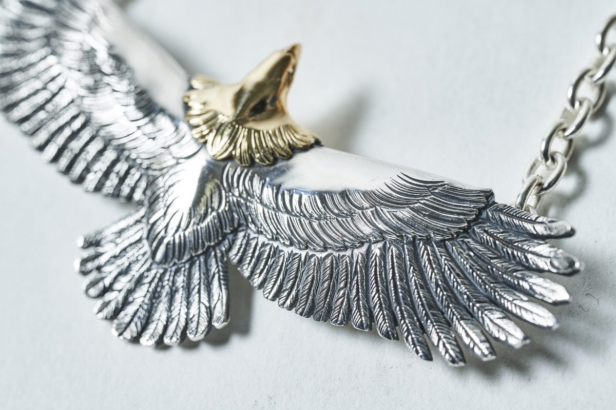 根強い人気を誇るイーグルのペンダントヘッド。羽根の意匠など細かなデザインが多い場合は研磨剤入りのクリーナー剤を使いたい。