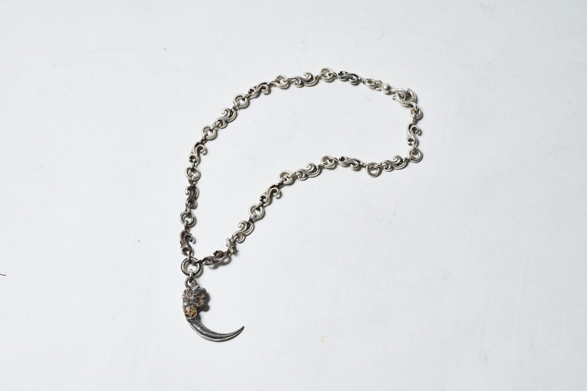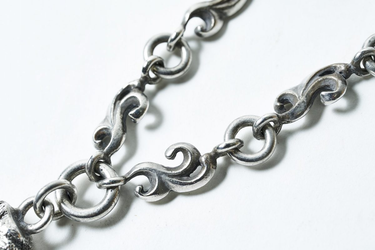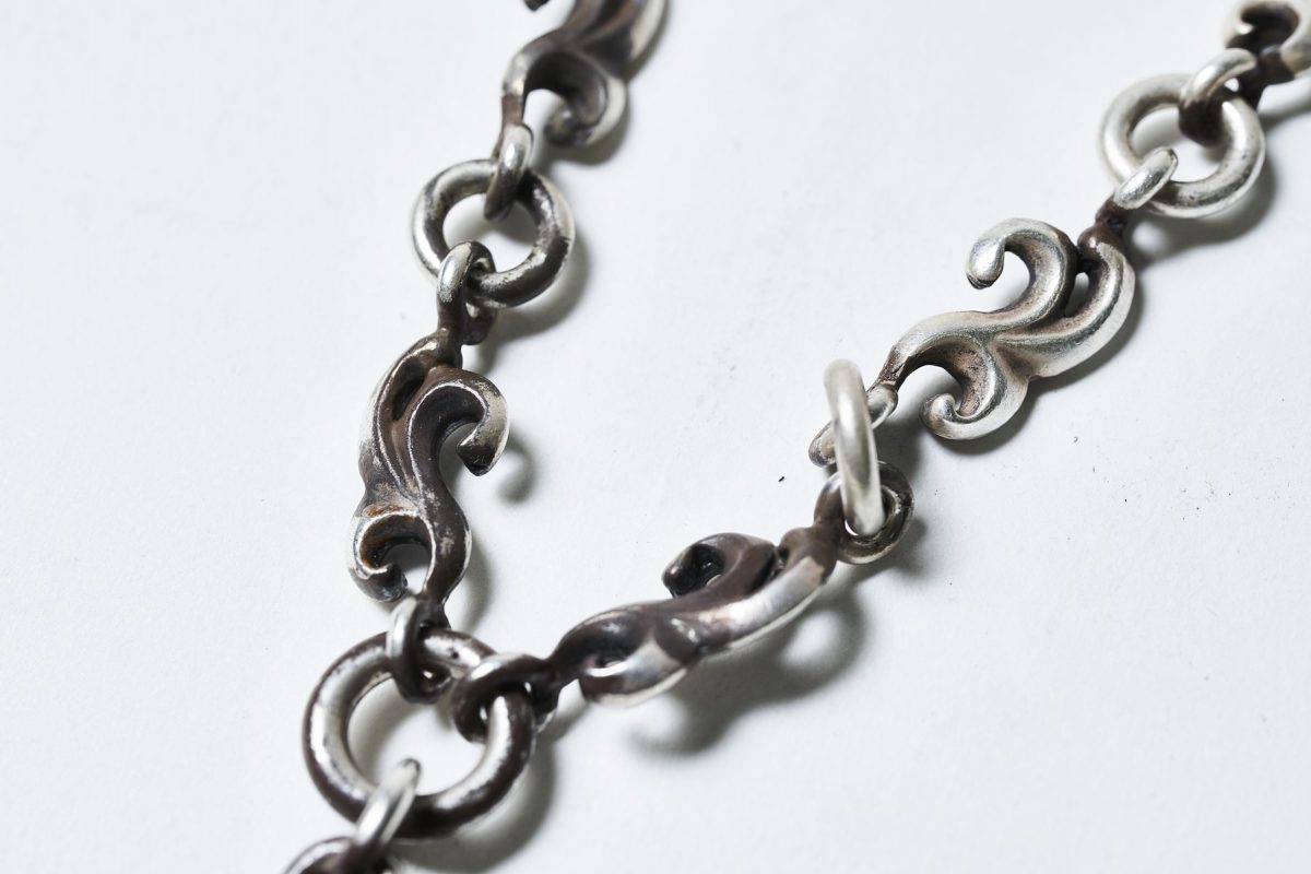 凝ったデザインのシルバーチェーン。こちらも皮脂が固着し錆のように黒ずんでしまっている……