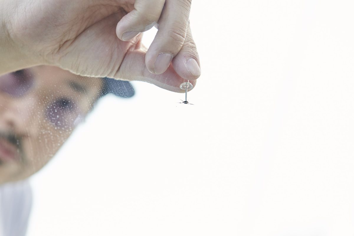 説明書の通りに吸っては止めて待つことを繰り返した後は、付属のカミソリで土台の両面テープごと剥がす。手を切らないよう慎重に。