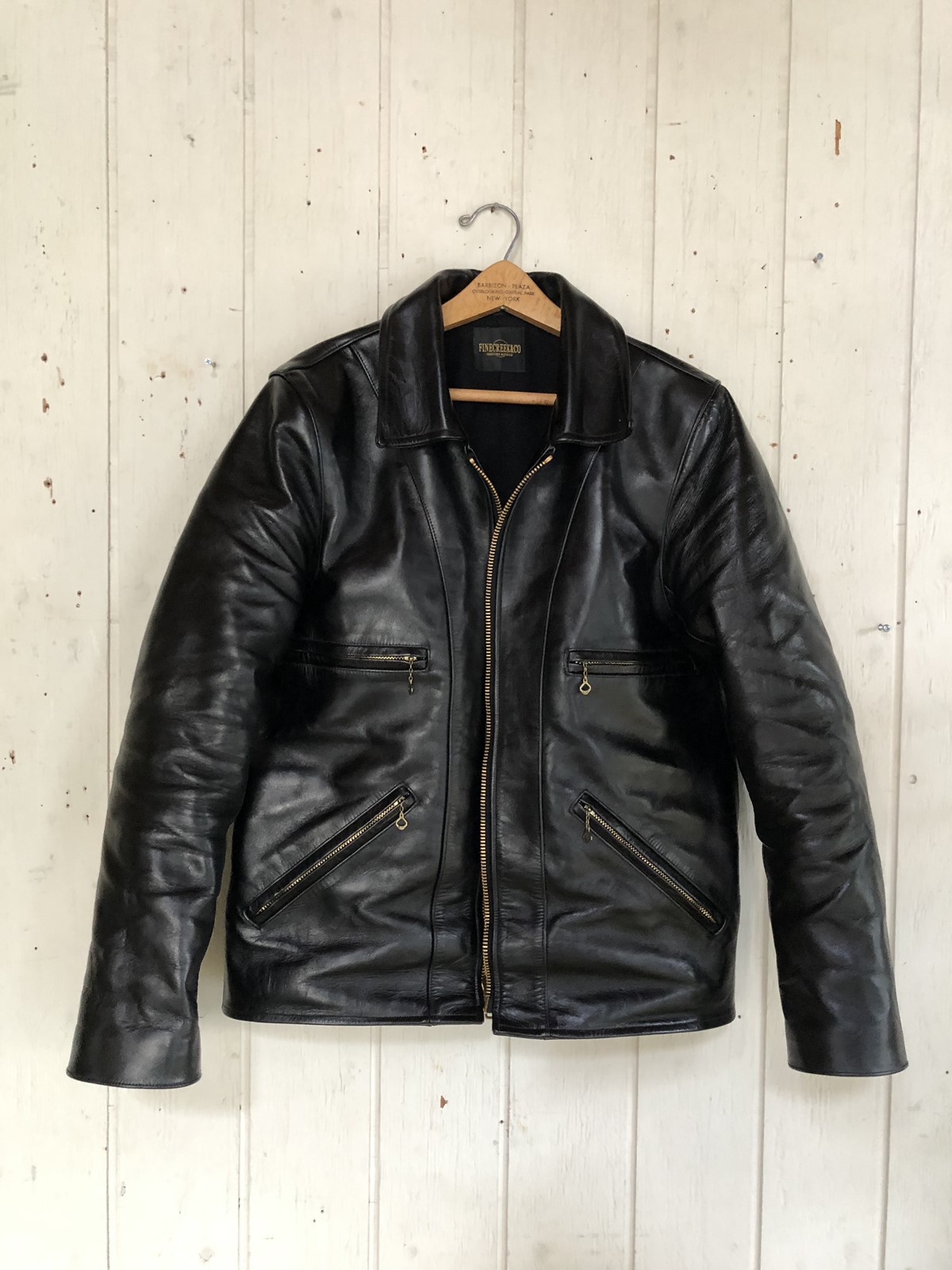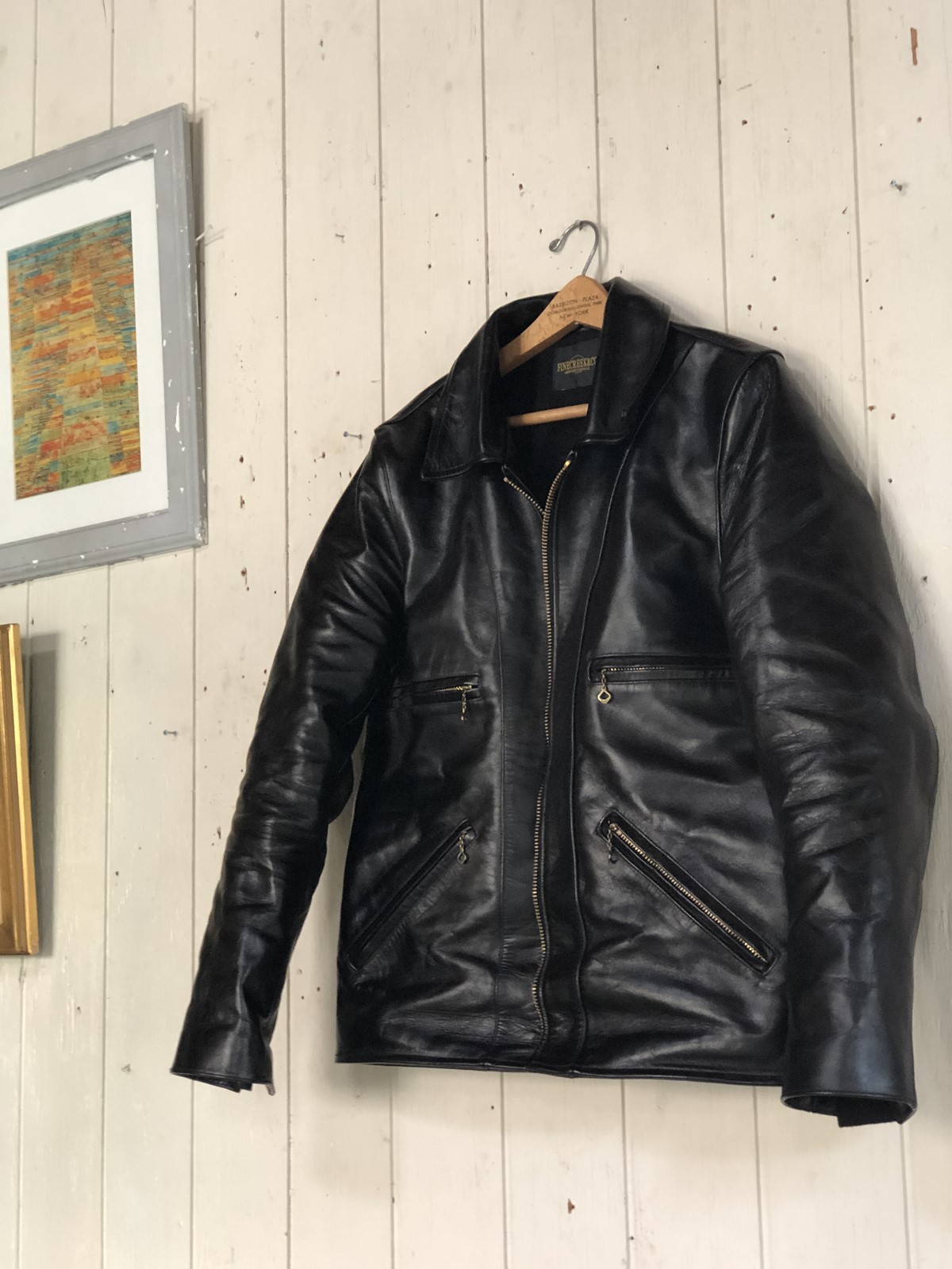これは写真の右側から日光を取り入れている写真。革ジャンのサイドから日が当たると、腕の影が大きく出、立体感が増すが、腕の影が身頃に落ちて若干暗くなる傾向が。でもアリです。革ジャンのフォルムを強調するならこの撮り方をチョイス! 色味だけ白飛びして見えるので、1枚目の写真も一緒に掲載するといいだろう。