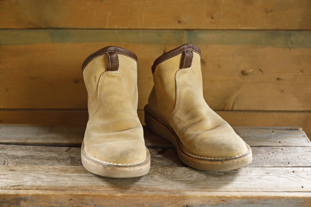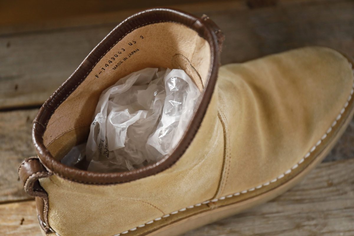 ハイトの高いブーツや、柔らかい素材のものだと、シャフトが倒れてしまいがち。そんな時はデニム編で覚えたアンコが大活躍! 新聞紙などを丸めて中に詰めれば、シャフトもしゃんとする。