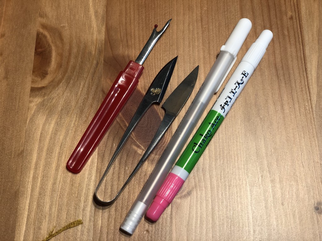 糸を切るためのリッパー、糸切りばさみ、生地に印をつけるチャコペンは、基本的な裁縫道具なので押さえておきたいものだ。