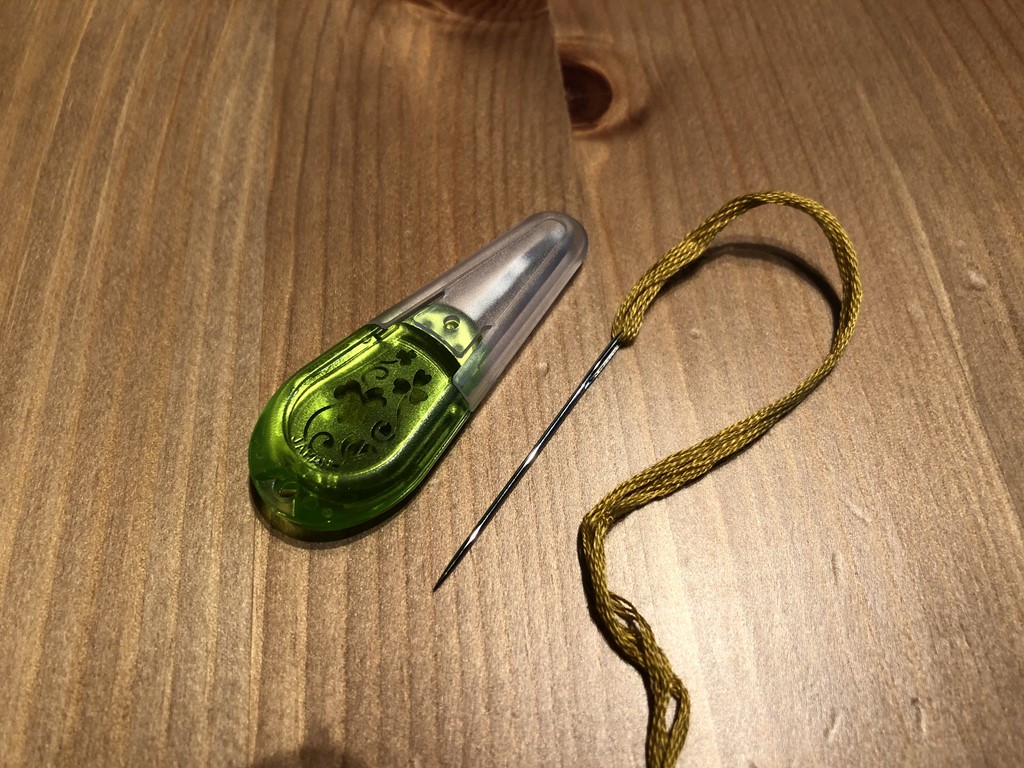 左は修正テープではなく糸通し。つまり針に糸を通すためのもの。右は刺繍専用の針。長さも程よく作業効率も格段にアップ!