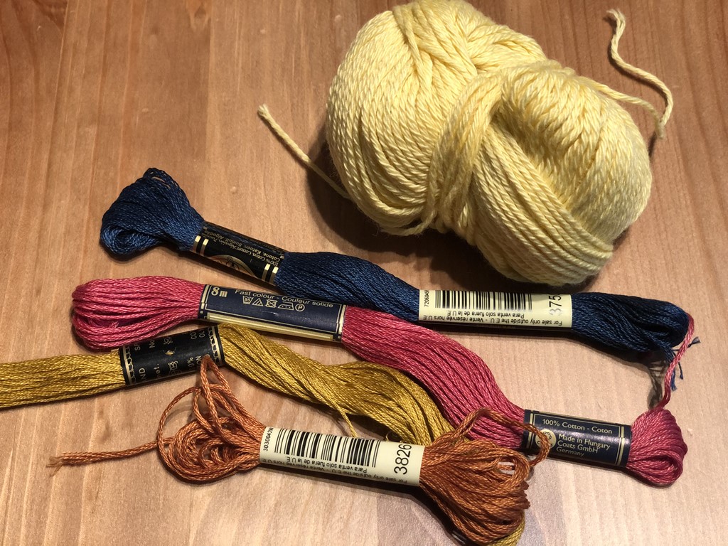 手前が刺繍糸。様々なタイプがあり、好みに応じて太さや素材を選んでほしい。奥は下の星刺繍に使ったオーガニックコットンの毛糸。