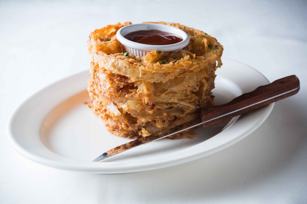 トニーローマのもうひとつの人気料理がこちら。大きなリング状に揚げたスライスオニオンをBBQソースか塩でどうぞ。1015円