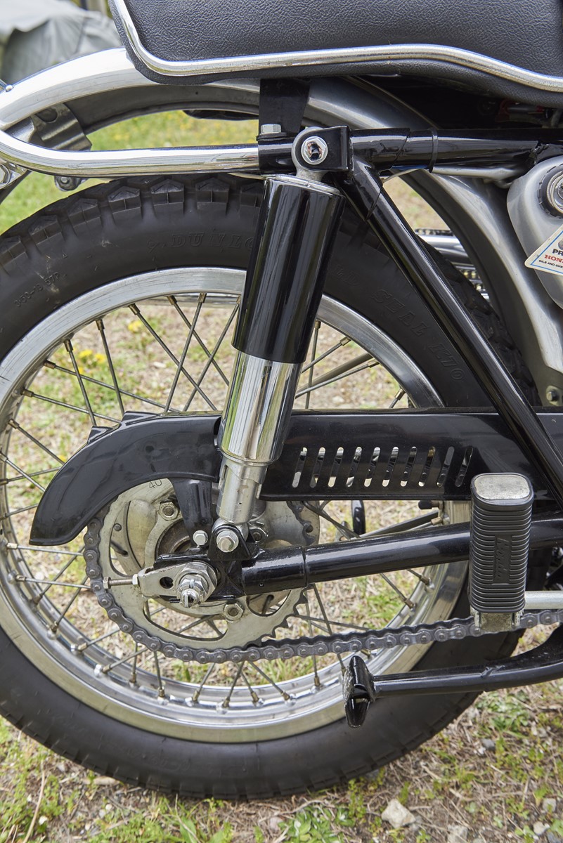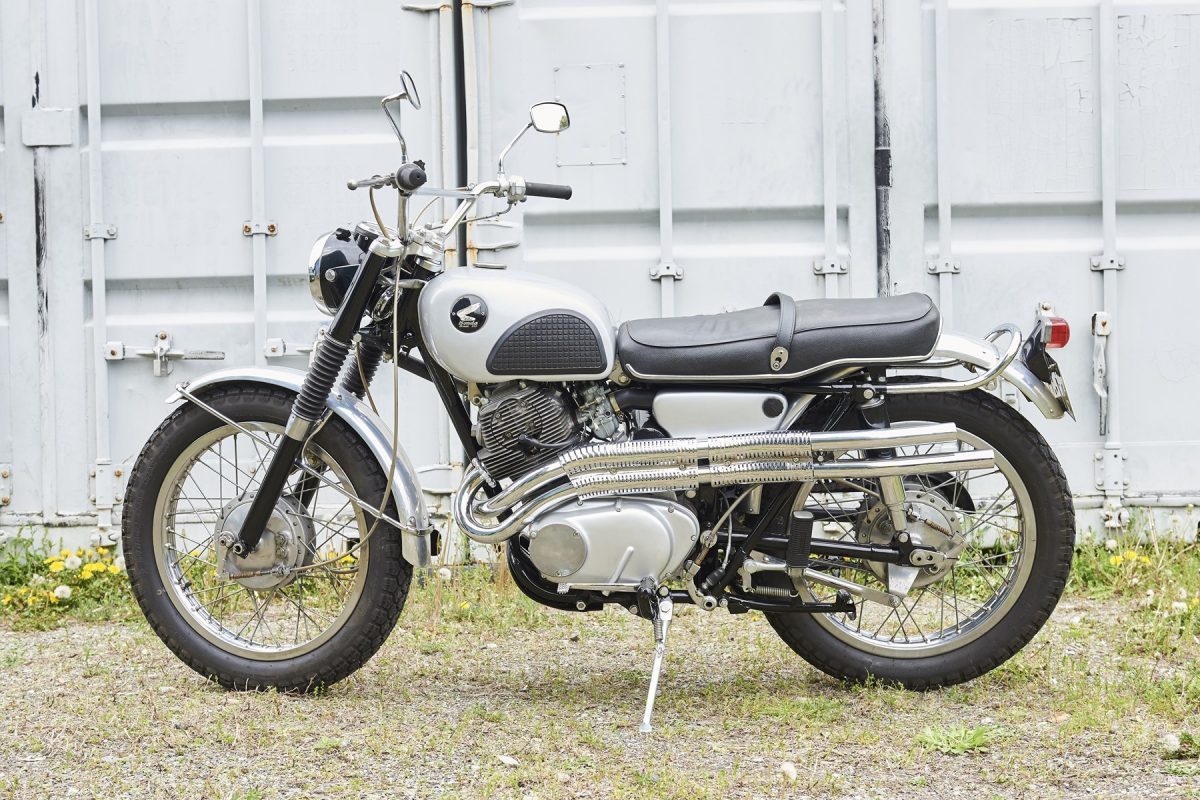 本格的スポーツモデルのCB72をスクランブラー仕様にしたホンダ初のオフロードモデルで、北米マーケットを意識して開発された。エンジンはそのままにアップマフラーとアップハンドルに変更。専用のクレイドルフレームを採用している。当時の定価は18万9000円。大卒の初任給が1万8000円程度と考えると、かなりの高級車だったといえるだろう。