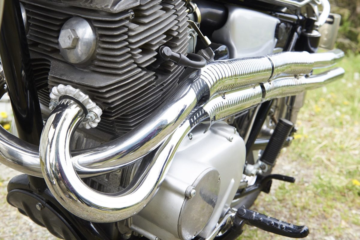 CL72の最大の特徴が19インチのホイールにアップマフラーを組み合わせることで、悪路走行を可能にしたこと。車重は153キロとけっして軽くないが、軽快な走りを実現している。