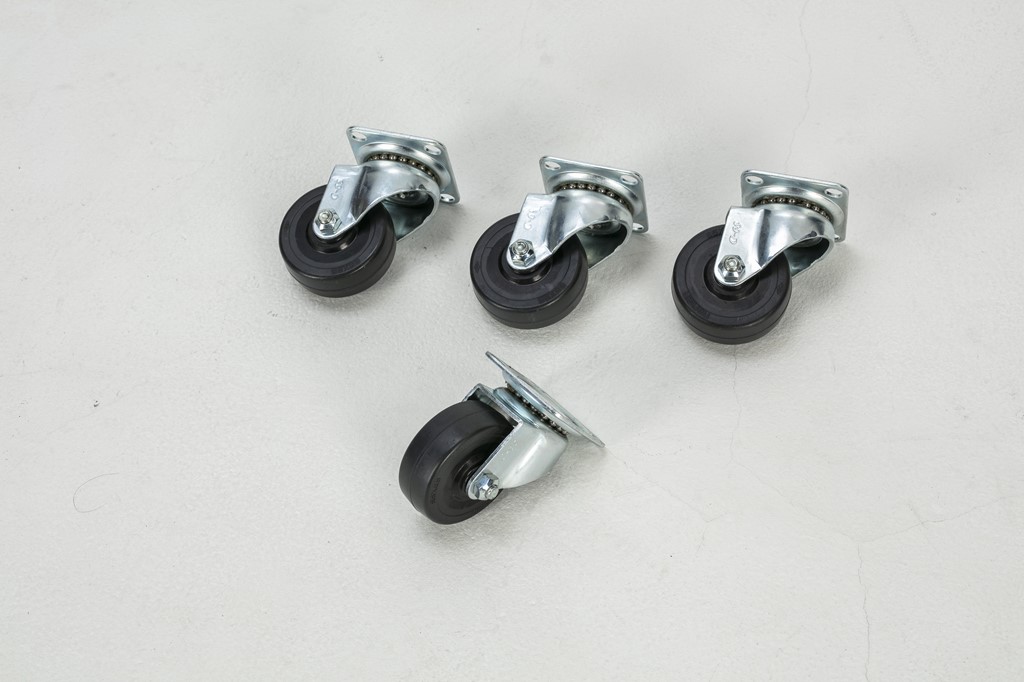 キャスターを付けて可動式に。模様替えや掃除もしやすくなること請けあい。4つ用意する。各約600円