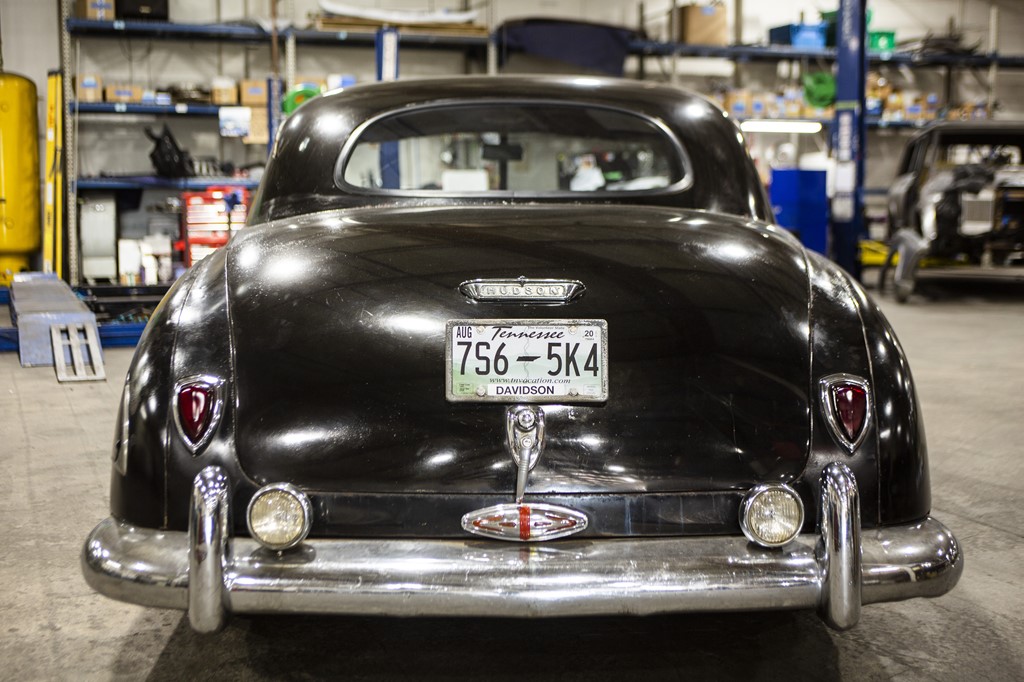 後ろ姿もまったく当時のハドソンそのまま。現代的なマフラーエンドなんかが見えたら雰囲気を損なうので、あくまで当時の外観を壊さないように仕上げているところがおもしろい。