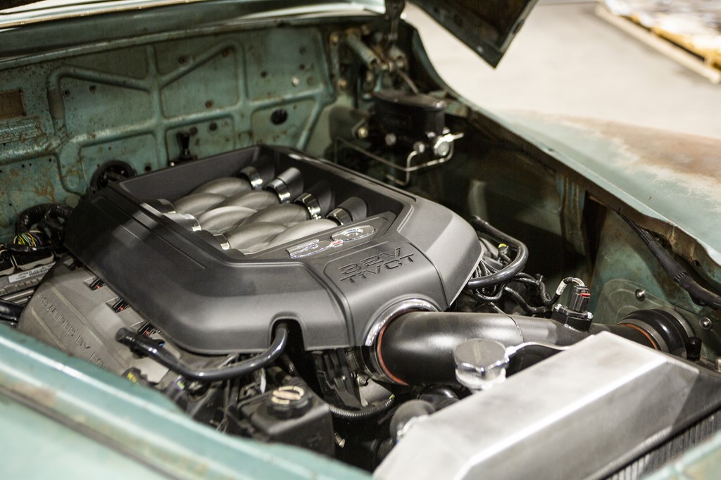 エンジンフードを開ければフォードの現行マスタングに搭載される5 リッター・コヨーテV8 が鎮座。それに合わせてアートモリソンのフレーム、4 輪ディスクブレーキを搭載。