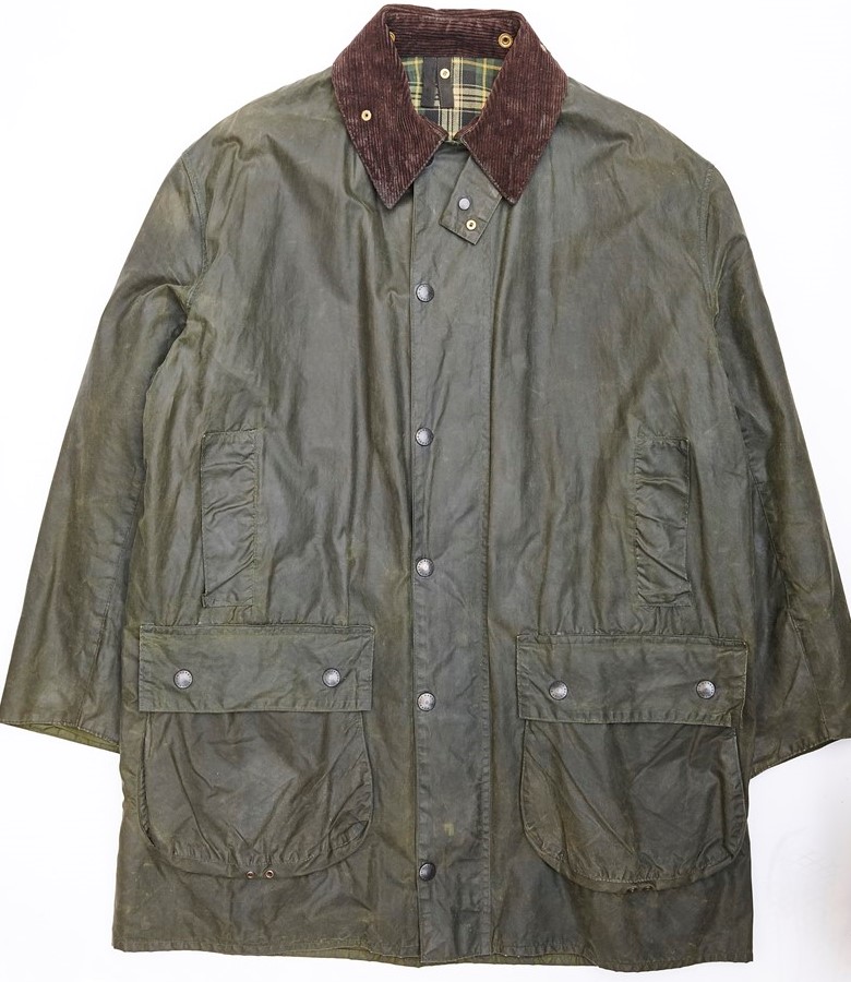 いま人気絶頂のバブアーは、1980年代の2クレスト時代のボーダーをピックアップ。コート丈のベーシックなデザインだけにオイルドクロスの風合いが映える。3万580円