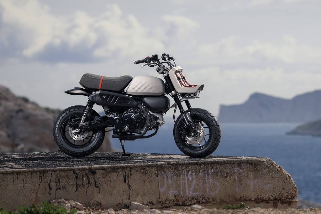 フランスのデザインファクトリー「VIBA Motor」の最新作となるモンキー125。複雑な構造を持つステーが備わったフロントラックや側面に凹凸が浮かび上がるタンクは、どちらも金属3Dプリンターで出力されたという、最先端の技術で作られた外装なのだ。