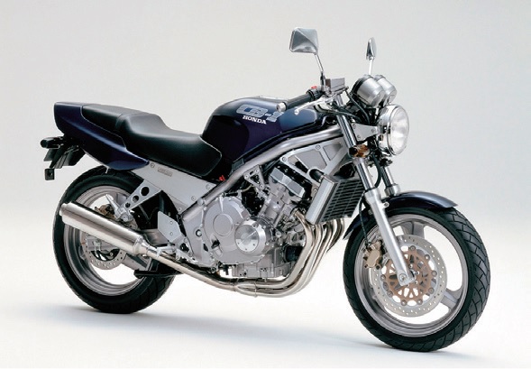 レーサーレプリカが全盛の’89年、CBR400RRの水冷DOHC直列4気筒を低中速重視の特性とし、スチール製ダイヤモンドフレームに搭載して登場。ネイキッドスポーツとしては先進的なスタイルと、レプリカ譲りのパワフルな走りが特徴だった。