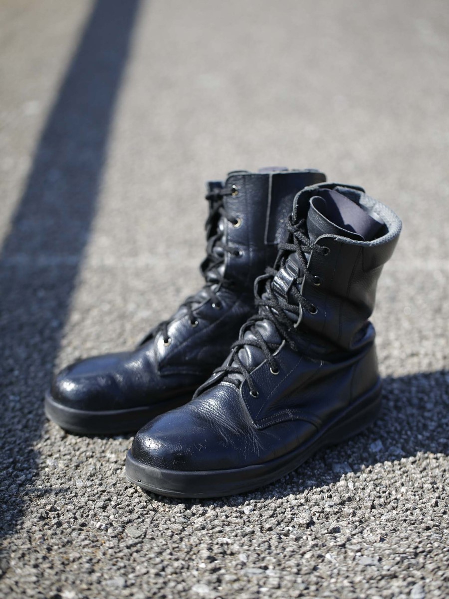 仕事では支給のブーツ(上)しか使えないのが残念だとか(笑)。