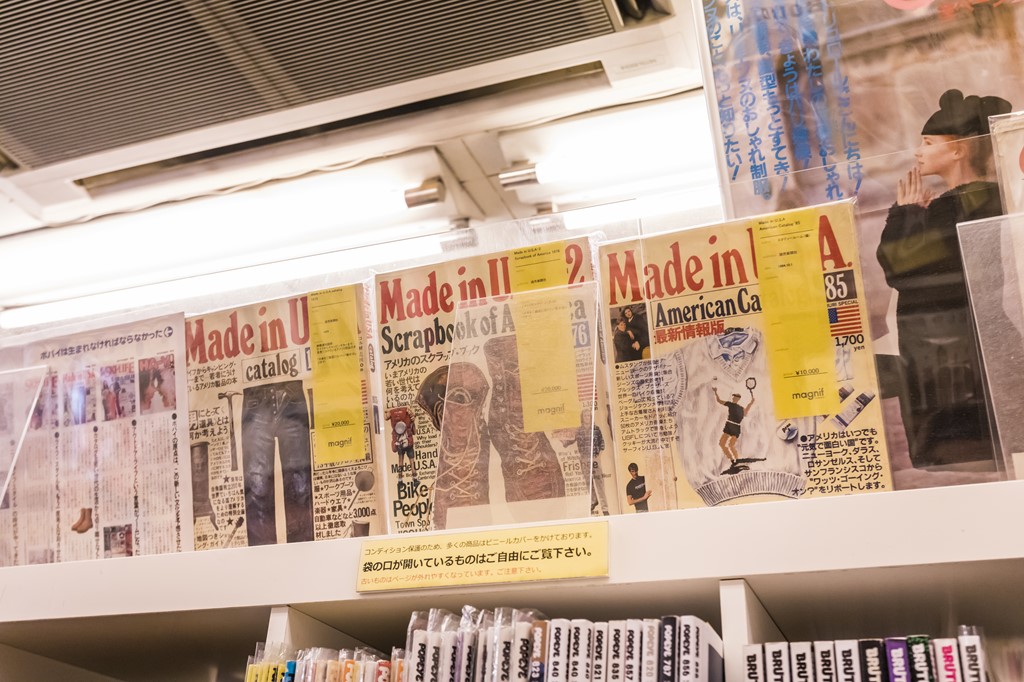 日本が誇る書店街・神保町にあるマグニフは、世界のファッション系雑誌を中心にした古書店。’70年代から現在までの雑誌が中心で、アイビーやモードなどジャンルごとに分けて関連書籍もディスプレイするというスタイルだ。当然アメカジファッション誌も充実しており、今では手に入りにくい小誌バックナンバーももしかしたら見つかるかもしれない。