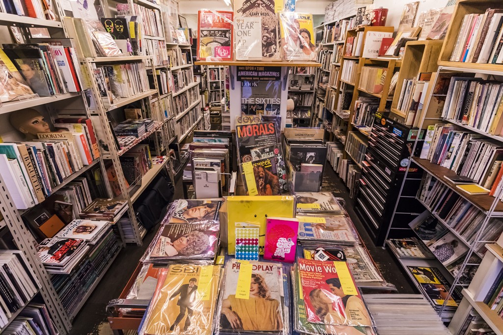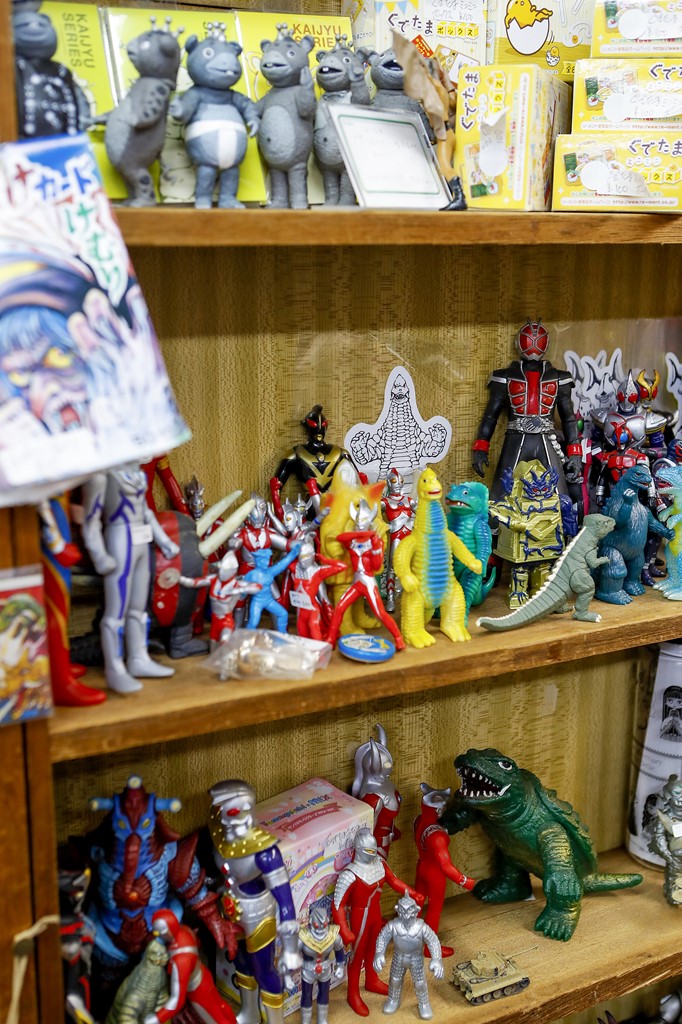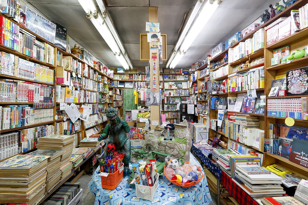 昔ながらの本屋さんの佇まいを残したネオ書房は、漫画や特撮、映画など子どもの頃夢中になったサブカルを中心にした品揃え。店内にあるものはほぼ売り物で、その7割は店主の私物だとか。ゴジラやウルトラマンなどのフィギュアもあり、一歩店に足を踏み入れた瞬間に、子どもの頃のワクワク感を味わえるはず。