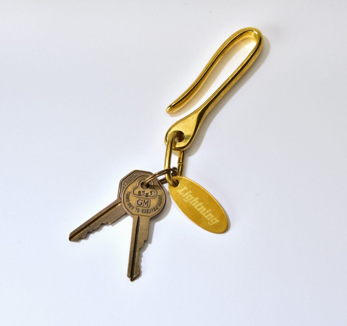 生まれたのが、真鍮製ヘリテージキーフック。いわゆるプラスチッキーなキーホルダーとはさよならして、使い込めば経年変化することでさらに味わいを増す真鍮製にしてしまおうというスペシャルグッズが登場。