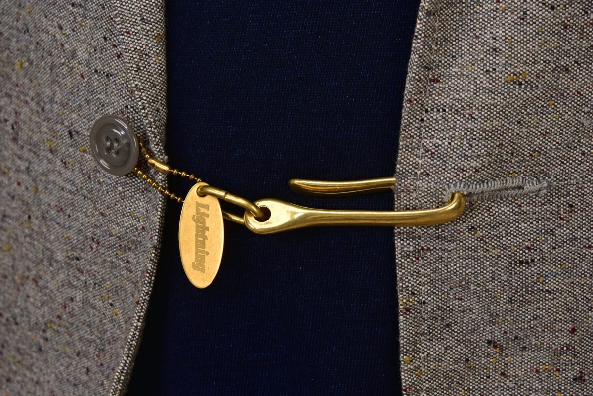 ずっしりと重い真鍮製のボディは金属製ながら角を落としてあるので、肌に干渉したり、ポケットの中に入れてもストレスフリーで痛くない。そこに真鍮製プレートでLightningのロゴが刻印されるスペシャルバージョン。さり気なく主張できる大人なアイテムに仕上がっている。