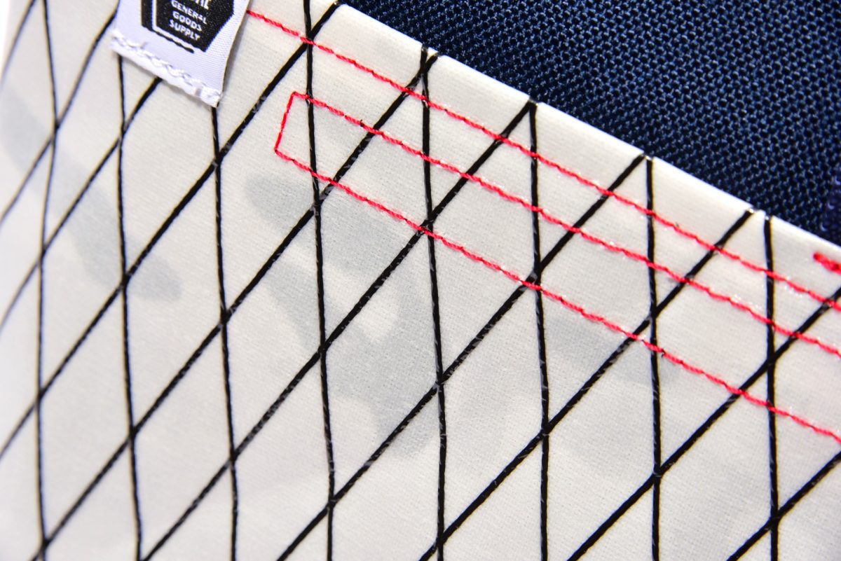 アウトドアシーンにおいても注目されている素材が「X-PAC」だ。その名前の通り、表面上にはX状の模様が並んでる。4層からなるこの生地は軽量性、耐久性、柔軟性、防水性に優れた素材。セイルクロス(帆)のシェア世界NO.1の特殊素材メーカー「ディメンションポリアント社」が開発。