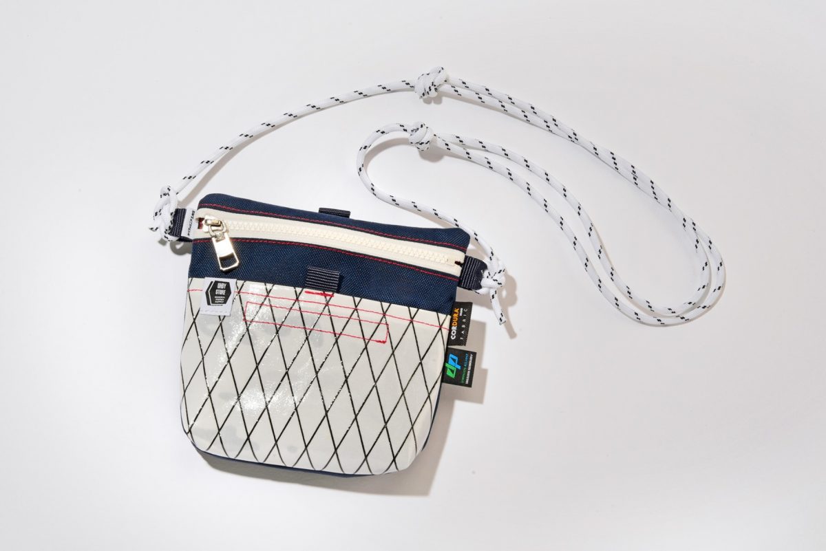 カリフォルニア工務店×UNBYのスペシャルコラボアイテムのひとつ、それがこちらのサコッシュ。コンセプトに『Surf Camp』を設け、ブルーとホワイトのビーチカラーを落とし込み、差し色にアメリカ星条旗カラーの赤ステッチをプラス。カリフォルニア工務店らしいコンセプトを見事に実現させたデイリーユースプロダクツ。9350円(W310×H175×D90mm)