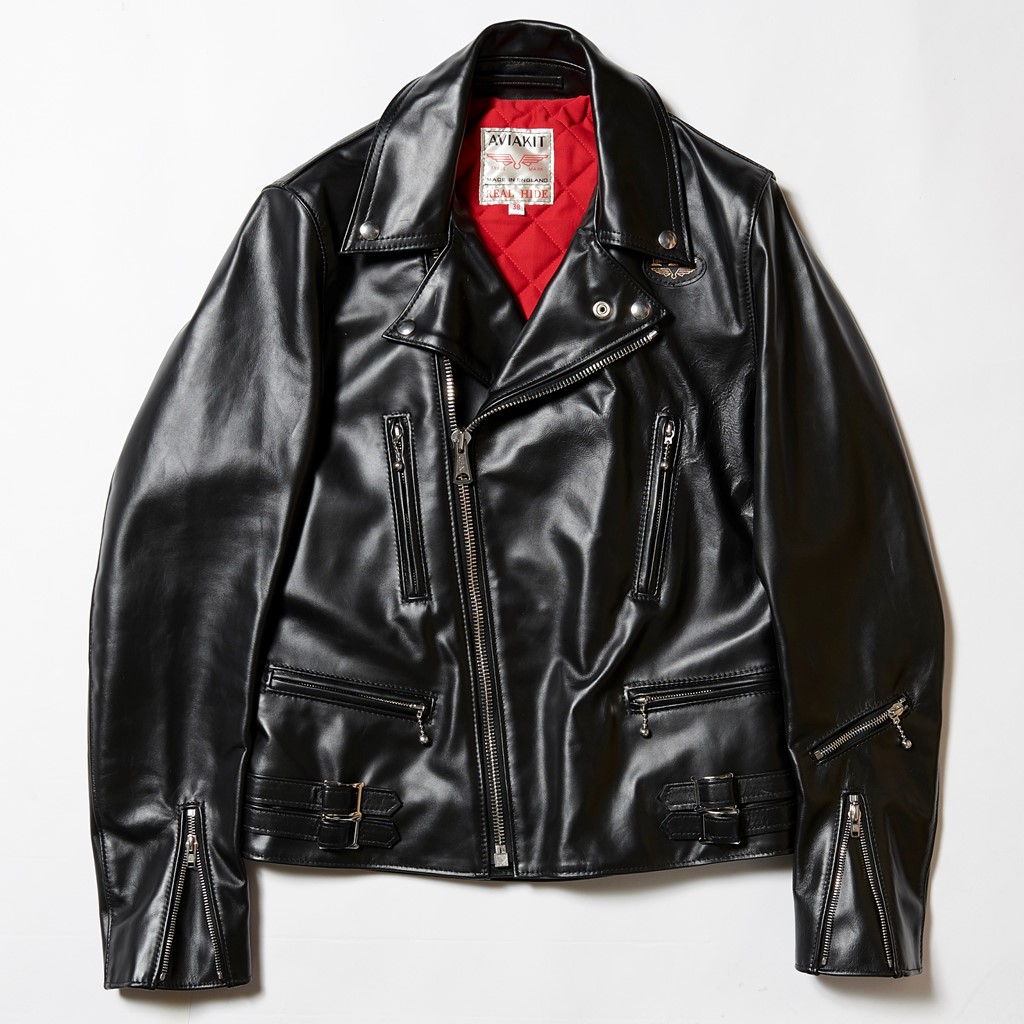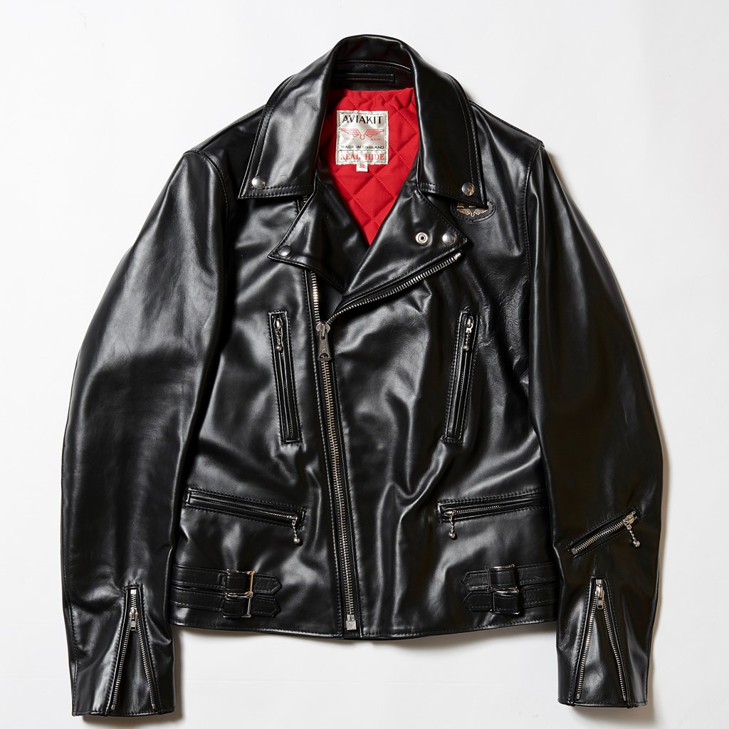 水平ポケットやフロントに回り込むサイドバックルなど、英国製ライダースの象徴的なディテールを備える定番モデル。19万300円〜