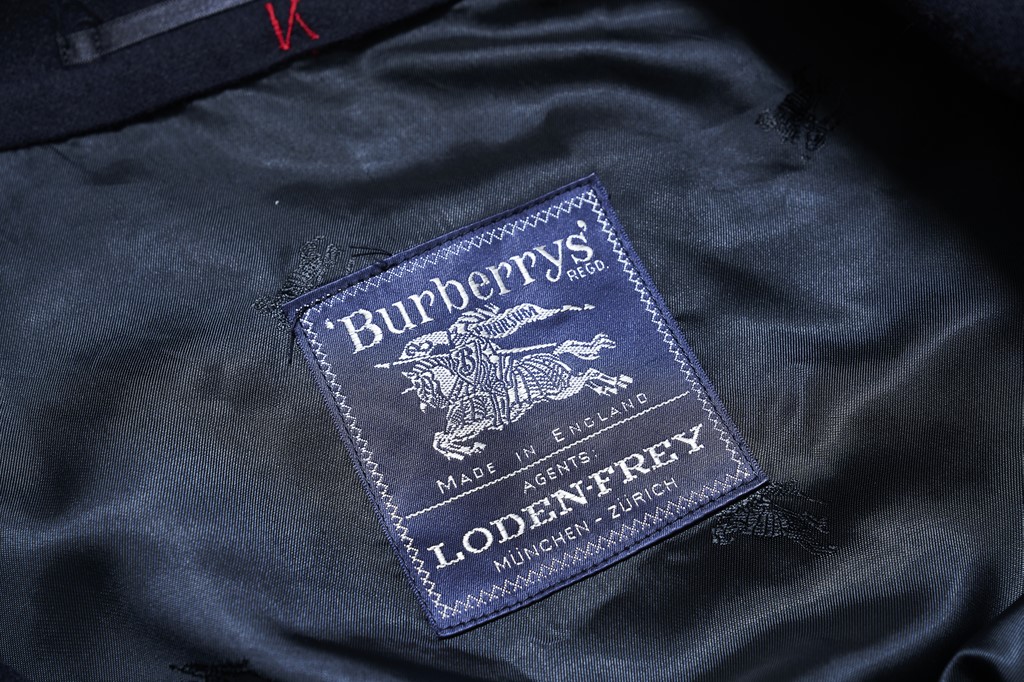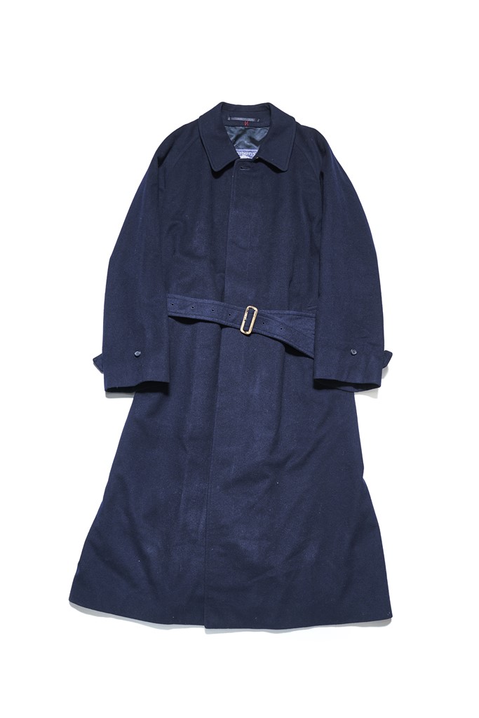 1990年代のバーバリーのコートは、数少ないネイビーのローデンウールで、袖の生地が1枚布になった通称1枚袖の仕様。ウエストベルトが付くのもポイント。こういった珍しい仕様は高騰している。21万7800円