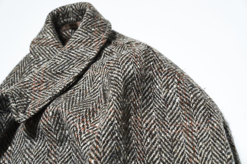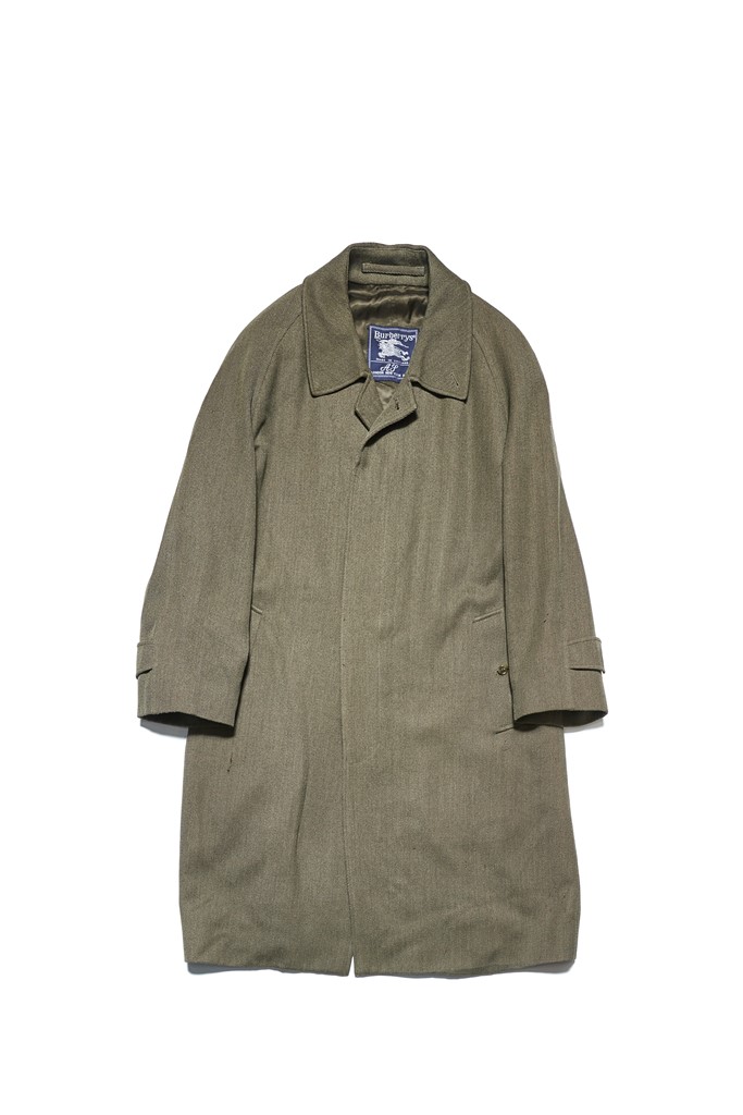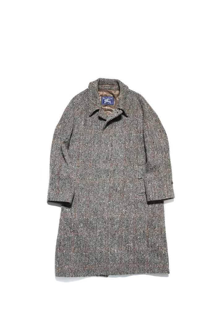 1990sのバーバリーのバルマカーンコート。ポイントはアイリッシュツイードで一枚袖の仕様であること。この仕様はシルエットが大きめ。21万7800円