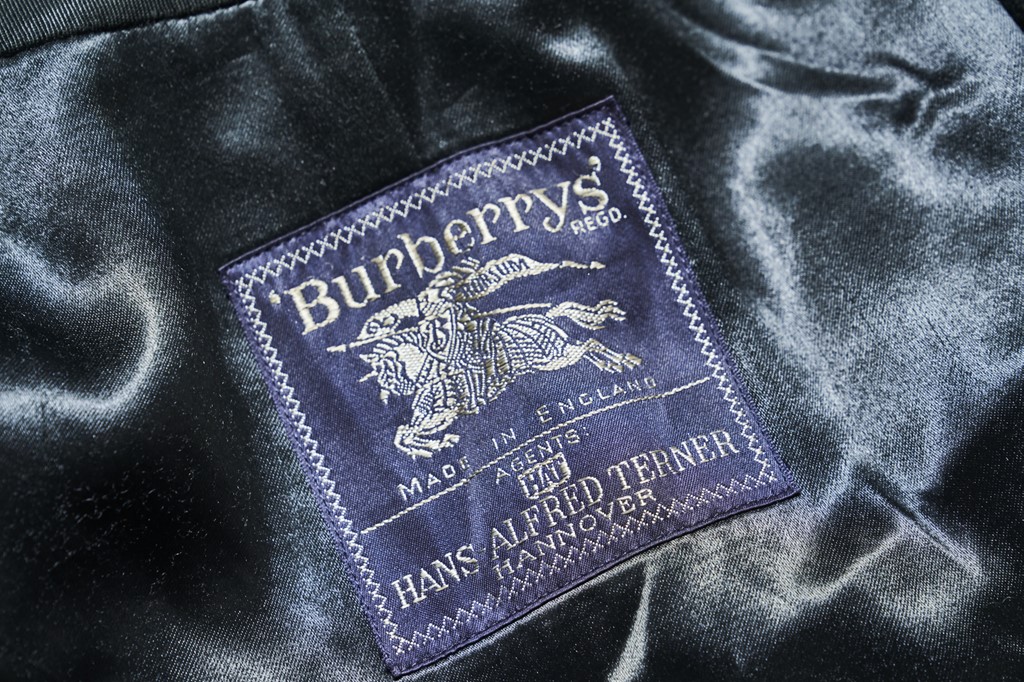 王道のバーバリークロスと比べると数が少ないが、ほどよいプライスで手に入るギャバジン仕様のバルマカーンコート。タグより1996年製。3万2780円
