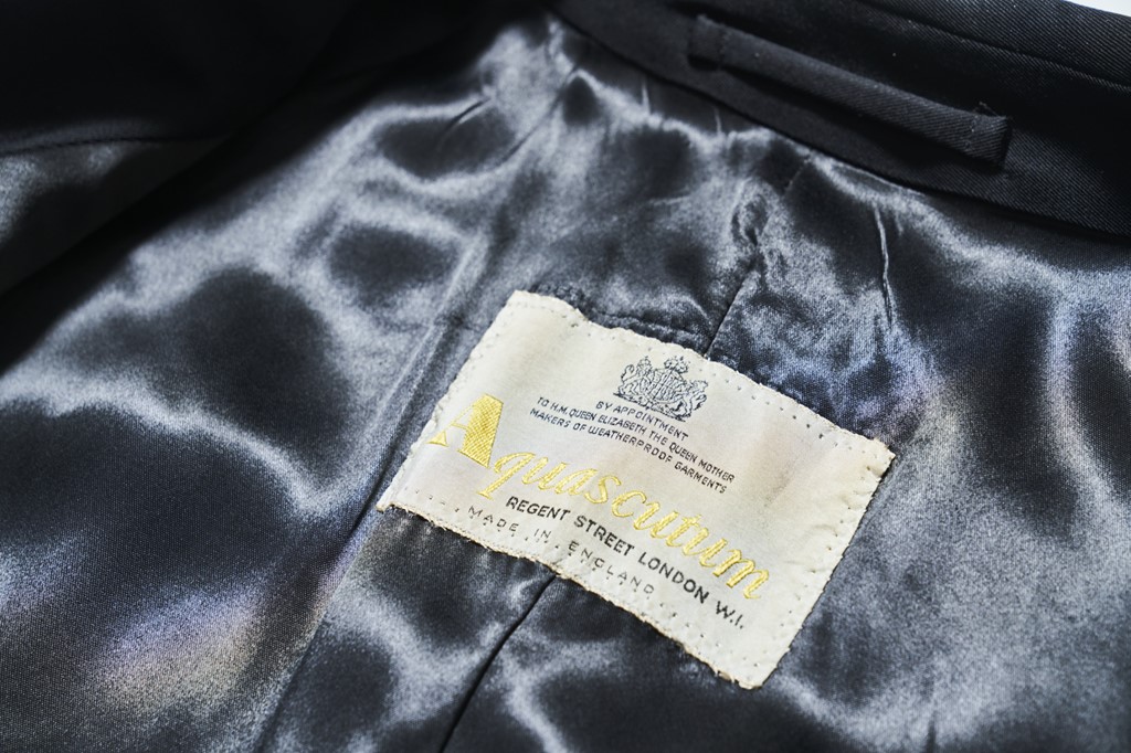 1980年代のアクアスキュータムのダブルブレストコート。ウールギャバジンでシャワープルーフ仕様。ニューヨークのデパートの別注。6万5780円