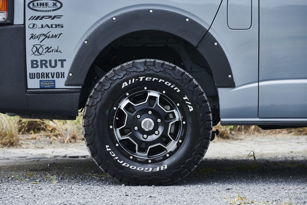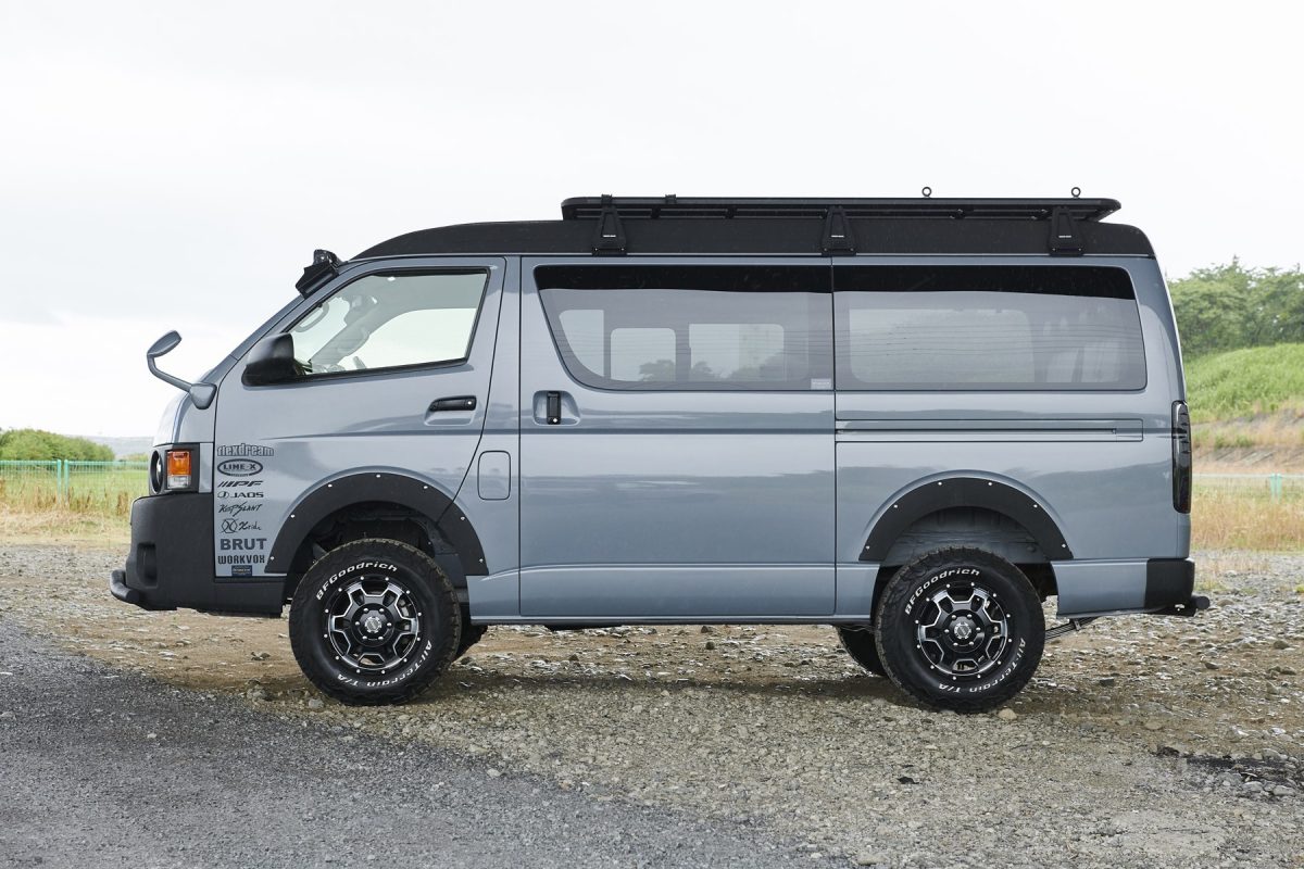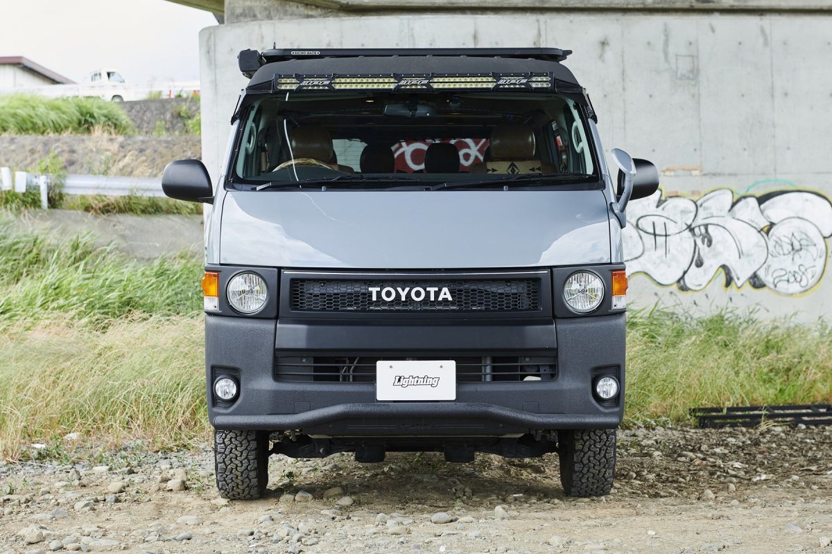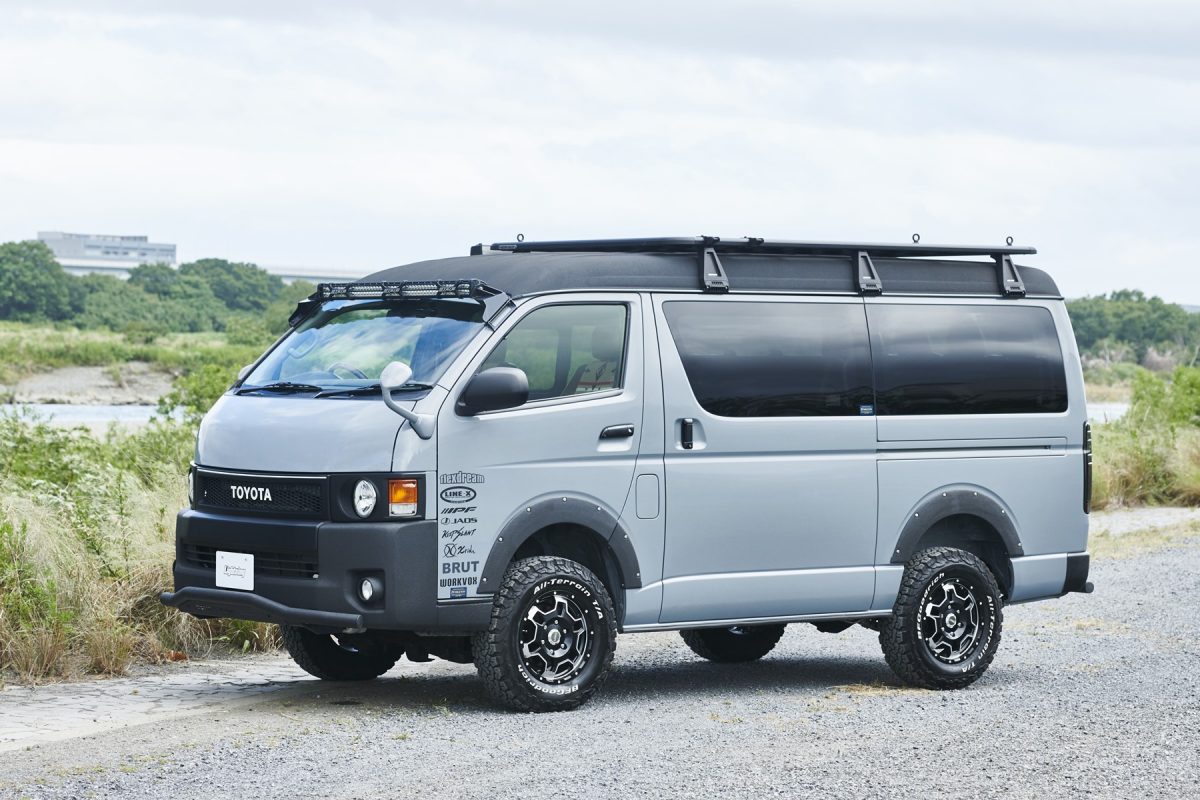 いまハイエースのカスタムといえば、厳つい“オラオラ顔”のローダウンスタイルが主流。もちろんそのワイルドな容姿もカッコイイのだが、全く新しいカスタムとして注目したいのが、ここで紹介するリフトアップしたアウトドアスタイルだ。