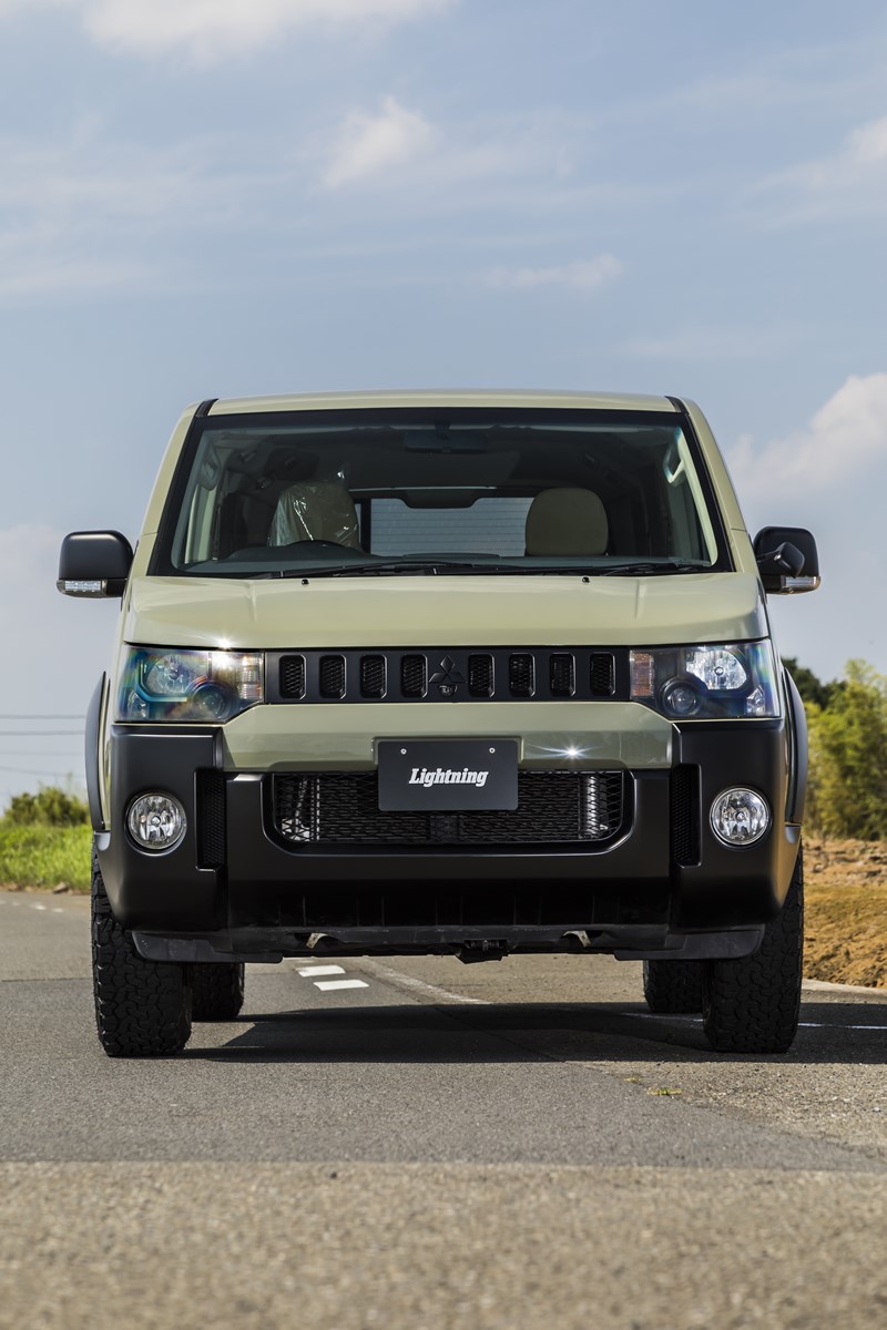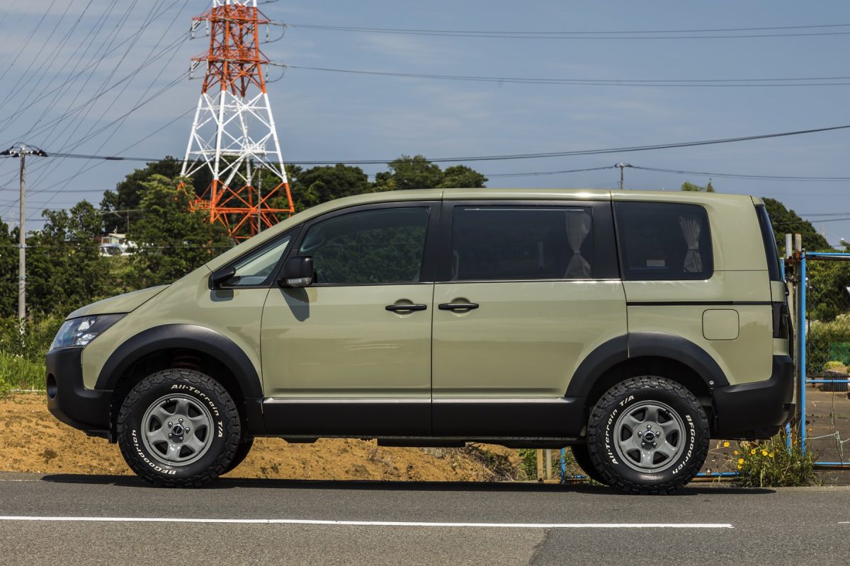 昨年の大規模マイナーチェンジで、フロントフェイスが大幅に変更されたデリカD:5だが、実はモデルチェンジ前は中古市場でも比較的安価にベースを購入できるようになった。今回はそんな前期D5をベースにオートモーティブジャパン(以下AMJ)がカスタム。元々車高が高いD:5なので、オフロードテイストは最初から備わっている車種。そこで1.5インチのリフトアップと、社外のオーバーフェンダーでそんなテイストを倍加。ちなみにベース車両のグレードや走行距離にもよるが、AMJではこれでおおよそ200万円前後となるそうだ。