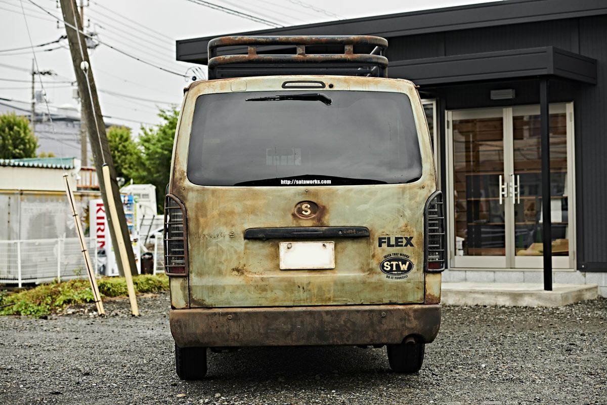 ヤレた雰囲気をペイントで再現した“作田さん”のハイエース。