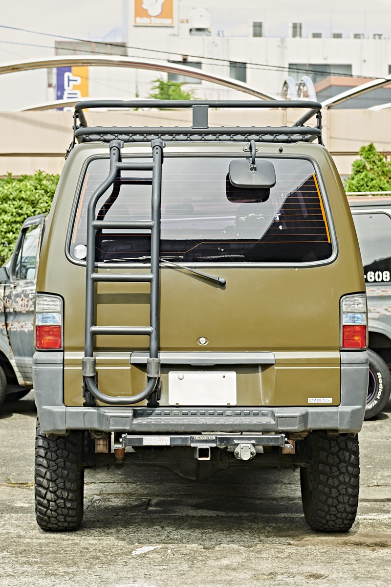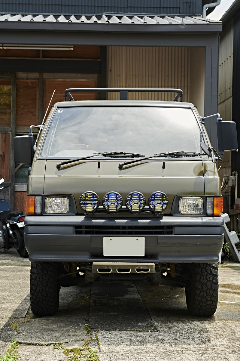 キャブオーバー型のワンボックスカーならではのズングリとしたデザインは、いま見ると十分クラシックな佇まいで、年式以上に旧車然とした顔つきが魅力。最近この世代のデリカカスタムが注目され始めたが、上山さんは何年も前にノーマル車をこのスタイルにカスタム。いまの価格高騰にはビックリだそう。