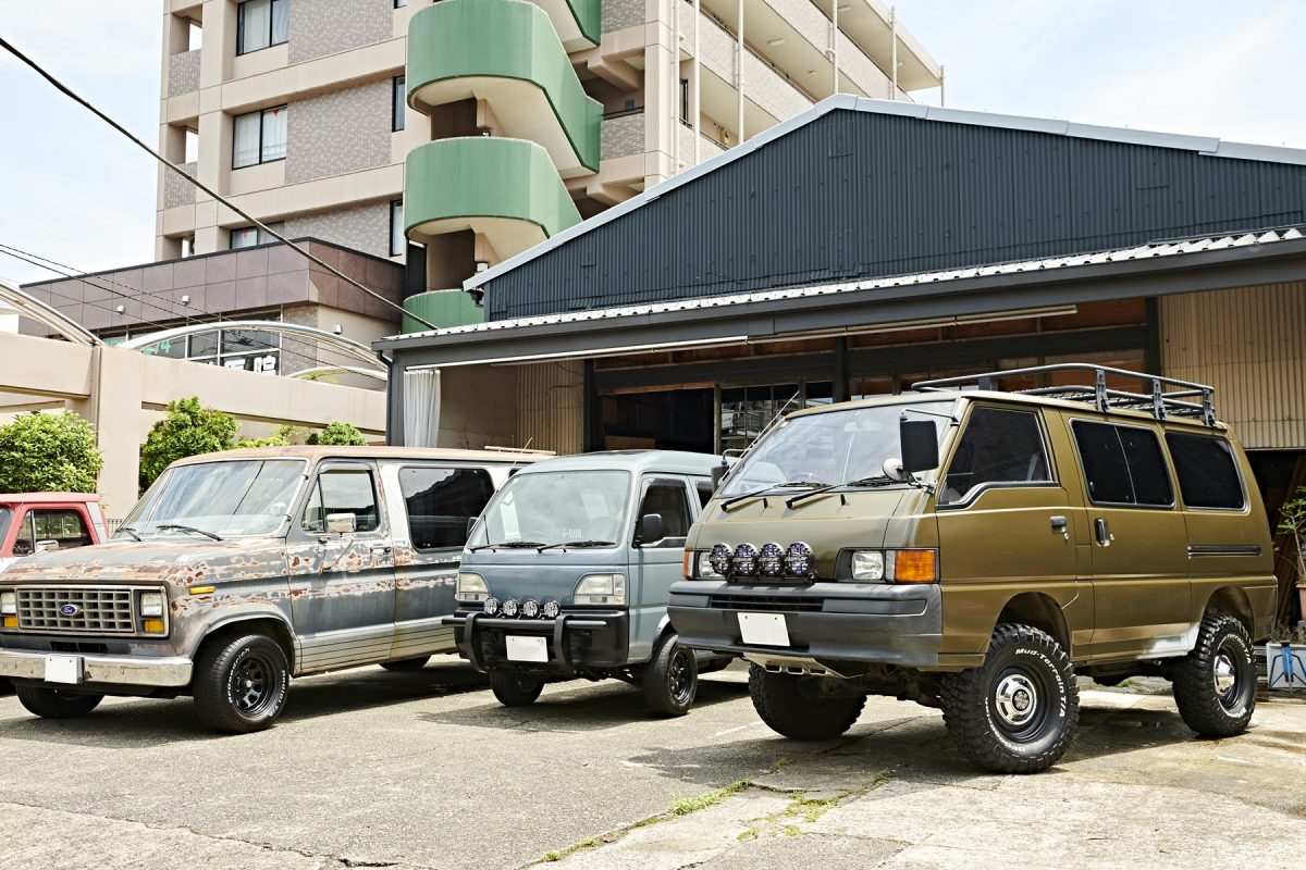 会社のイメージに合う堅牢かつクラシックな見た目と作業車としての機能性を両立させたバンたち。