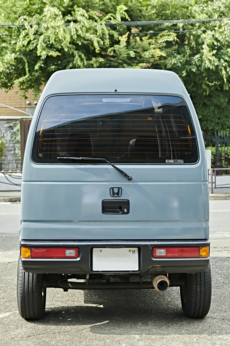 信号待ちをしていると、よく声をかけられるというくらい珍しいアクティバンのリフトアップスタイル。ワンオフで作ったが、メーカー品のようにスマートにカスタムしているのが上山さんの自己満足ポイントなのだ。車検はこのままでパスできるそう。