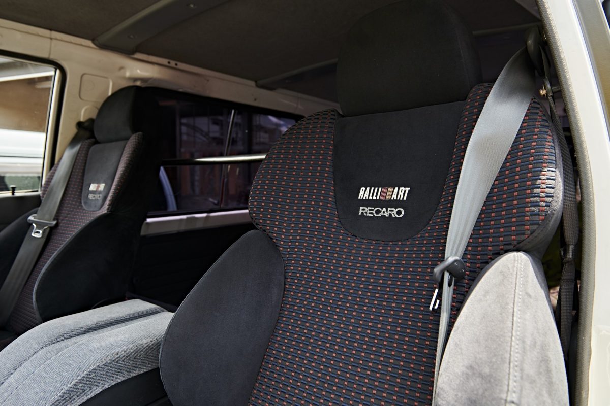 キャブオーバーゆえに純正シートの土台は左右が不均等。そのためかなり苦労してレカロシートを取り付けたという。