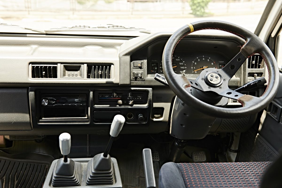リアはブロックで3インチほどリフトアップ。この1台は実はガソリン車で、これまた非常にタマ数が少なく、探すのにかなり苦労したそうだ。