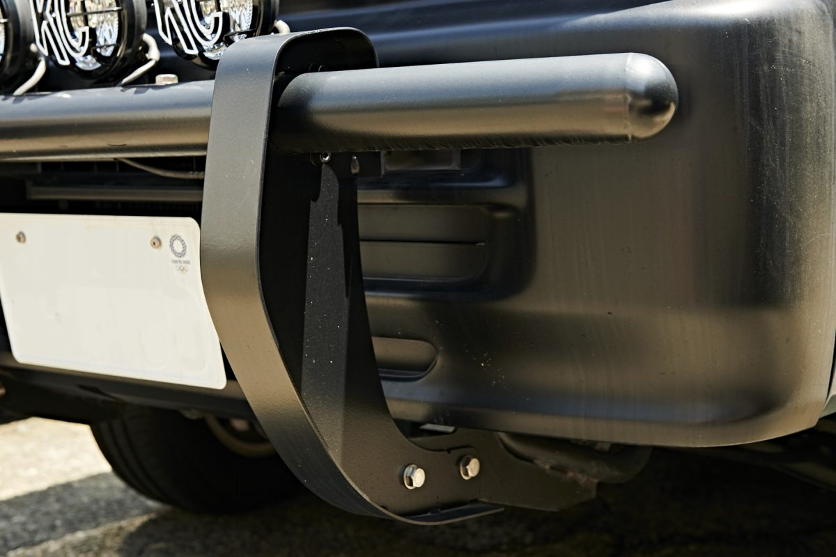 フロントのKC製フォグは日本未発売のもの。バンパーガードは「確かハイラックス用のものをカットして付けました」