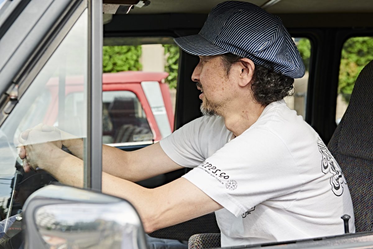 現に私は、原宿近辺でこのエコノラインに何度も遭遇し、ずっと気になる存在だった。脳裏に焼き付く圧倒的なクルマの佇まいが、フラフープデザインファクトリーの世界観そのものなのである。