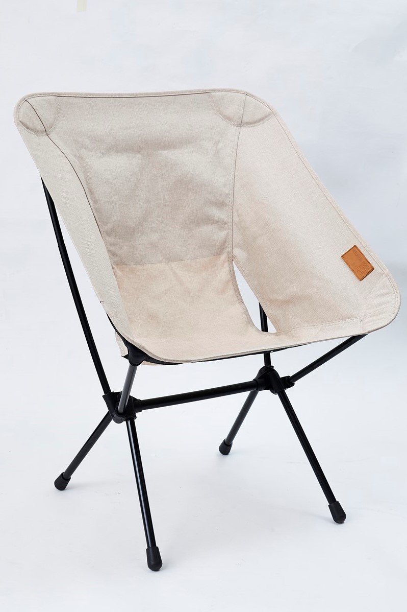 自宅で使うことも考慮して作った、ヘリノックス最大サイズのチェア。座面もポリエステル素材ながら、ファニチャーのような風合いを再現。リビングからキャンプシーンまで快適に使うことができる。2万680円(エイアンドエフ TEL03-3209-7575)