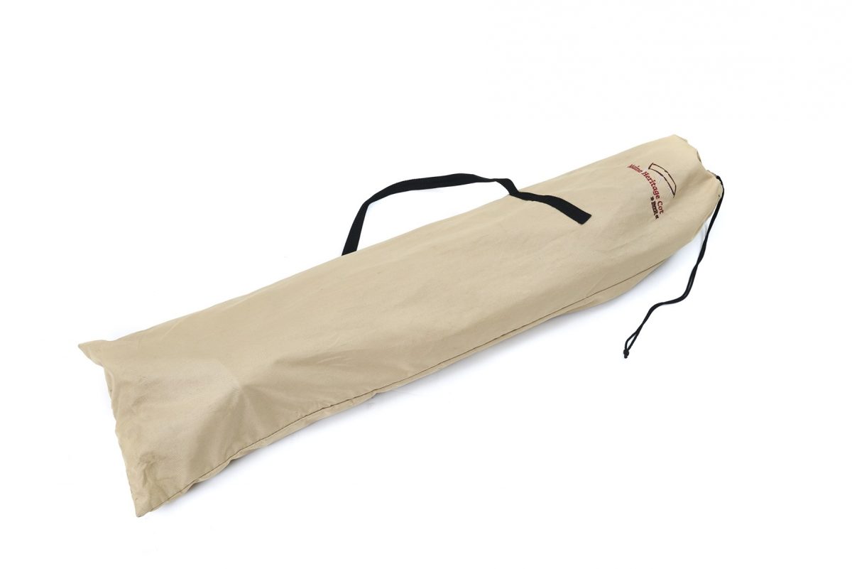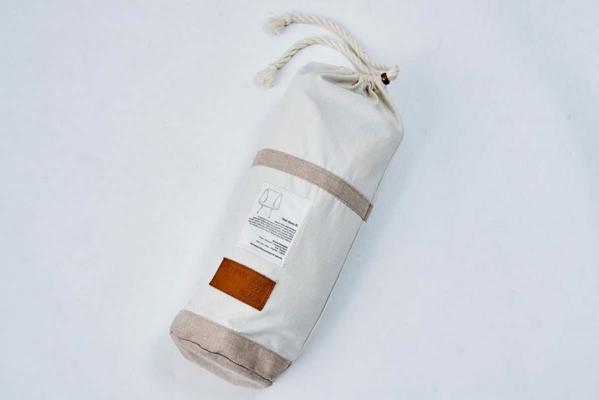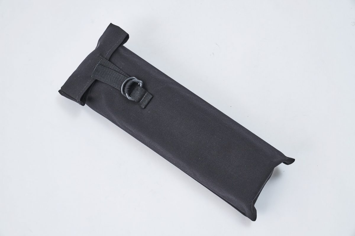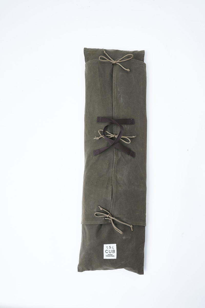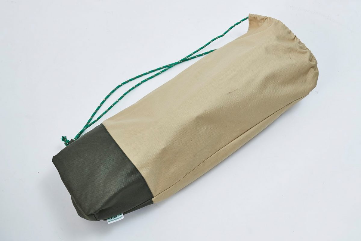 岡山の熟練の家具職人による組み立て式のテーブル。オーク材の天板はミリタリーコードで繋いでおり、それをクルクル巻いて足もバラバラした後は、パラフィン加工したコットン生地の特製ケースにコンパクトに収納可。4万1800円(ナップ TEL0867-34-1117)
