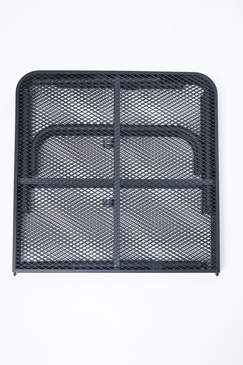 天板が金属メッシュになった折り畳み式テーブル。雨の日でも使用でき、足は2段階に高さ調整可能なので自宅では写真のようにローテーブルとしてもオススメだ。グッドデザインアワード2016年受賞。8199円(山善 家庭機器事業部 TEL03-5579-6271)