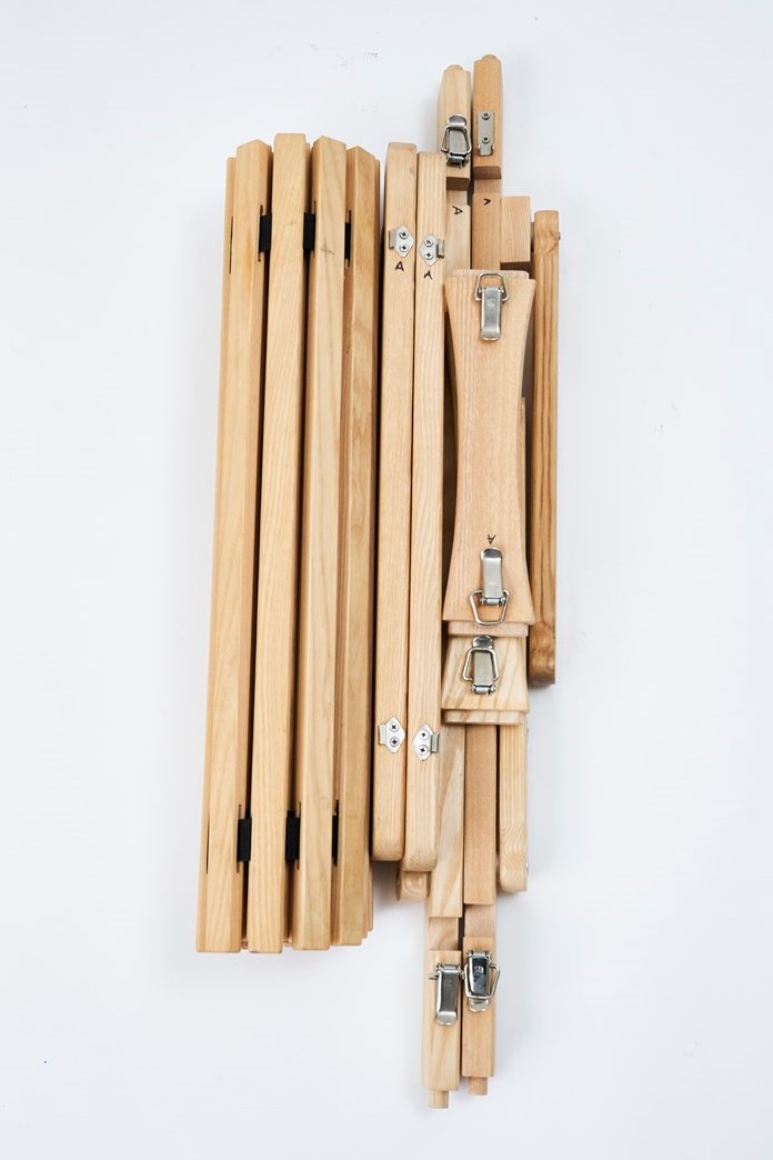 耐荷重135㎏というタフさが魅力。キャンプサイト、ビーチサイドだけでなく、自宅でも快適に使うことができる。タモ材を使っており、2つのパーツに分解して収納可能。背面裏にボトルオープナーも装備。1万9800円(エイアンドエフ TEL03-3209-7575)