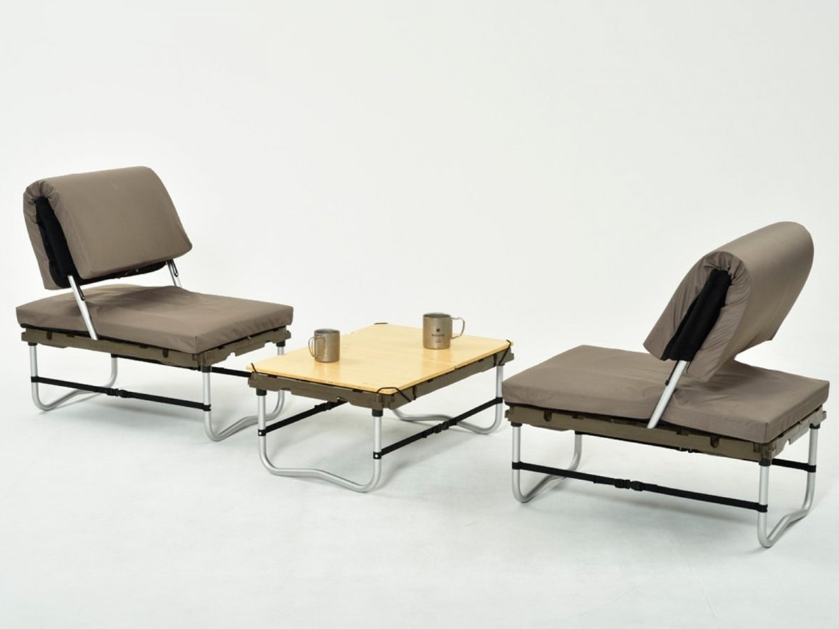 使うシーンに合わせて、ソファだけでなく、コット、チェア、ラックにまで変化するマルチファニチャーがこれ。ソファとして使うなら、スノーピークならではのIGTマルチファンクションテーブルを連結させると、さらに便利に使うことができる。7万6780円(スノーピーク TEL0120-010-660)
