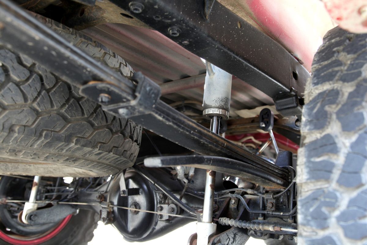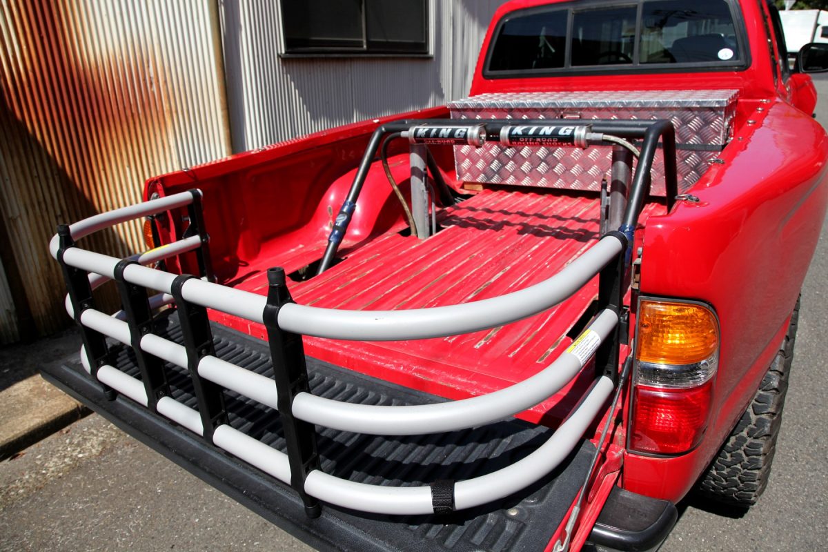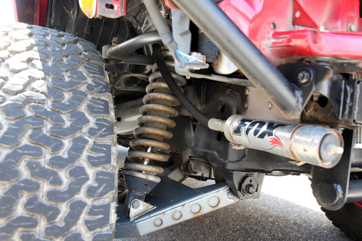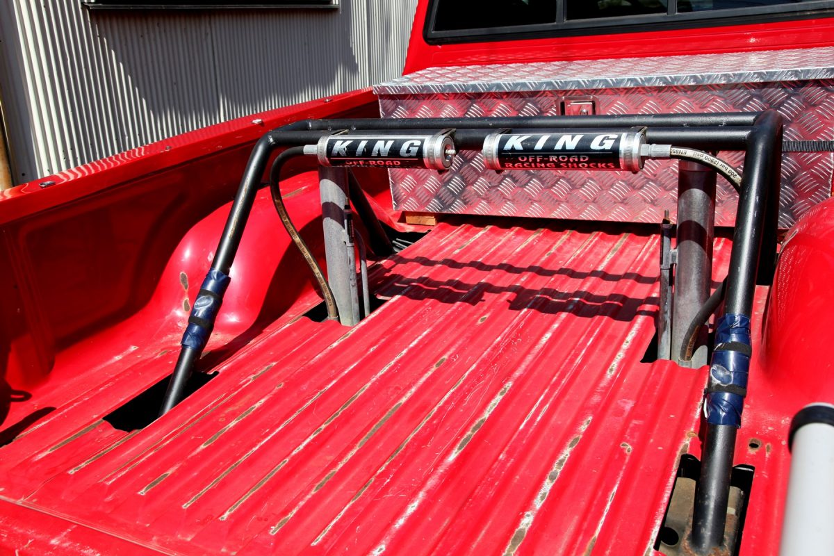 リアのショックは大ジャンプに耐えるべくロングストロークのものを装備しているため、荷台から上に大きく飛び出したセッティングとなっており、当然バイクなども積むことができない。この使い方こそ、実に都会的で面白いのだ。