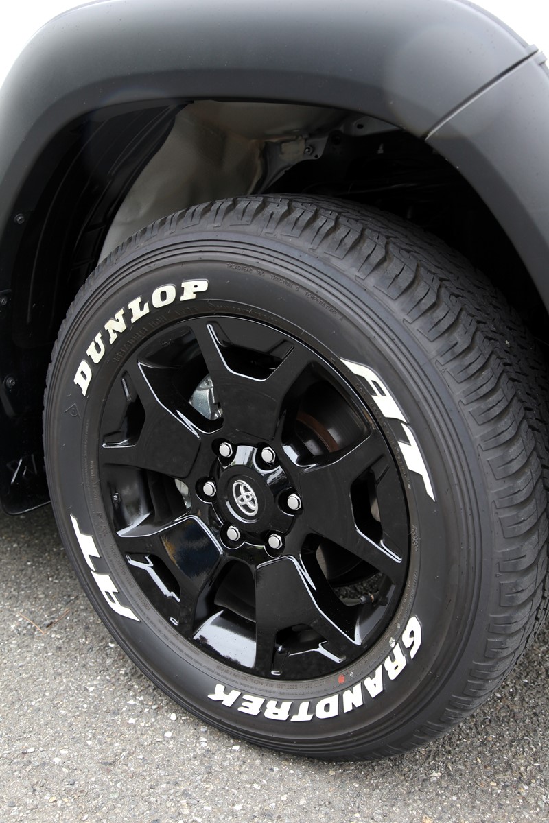 265/60/R18のホワイトレタータイヤにブラック塗装したホイールが、この特別仕様車の見た目をさらに精悍なものにしている。