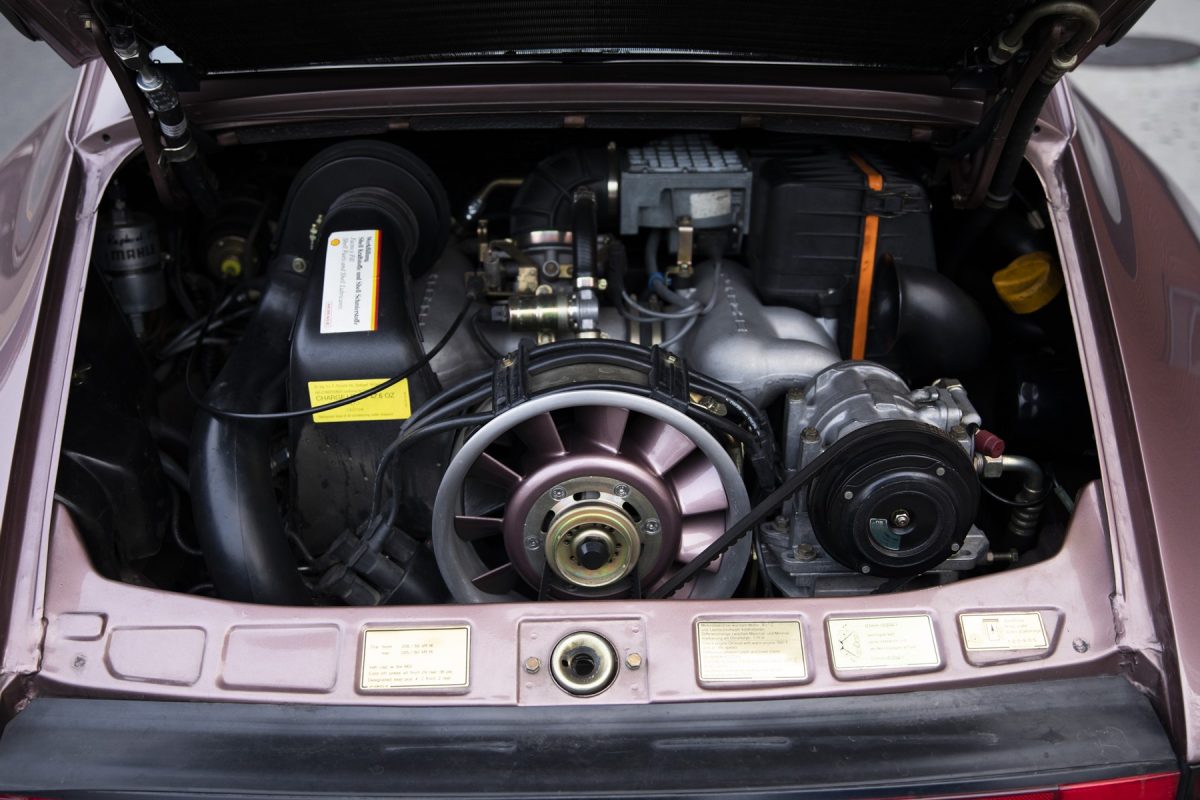 エンジンは250馬力を発生する3.2L空冷フラット6。ファンをボディカラー同色のカシスレッドに塗るなど見えない部分もディテールアップしている。