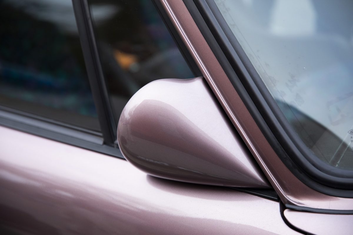 サイドミラーはボディ同色の小さなタイプに換装してスポーティなルックスに。多少視認性が悪くなるけれど、実用よりも見た目でチョイスする。